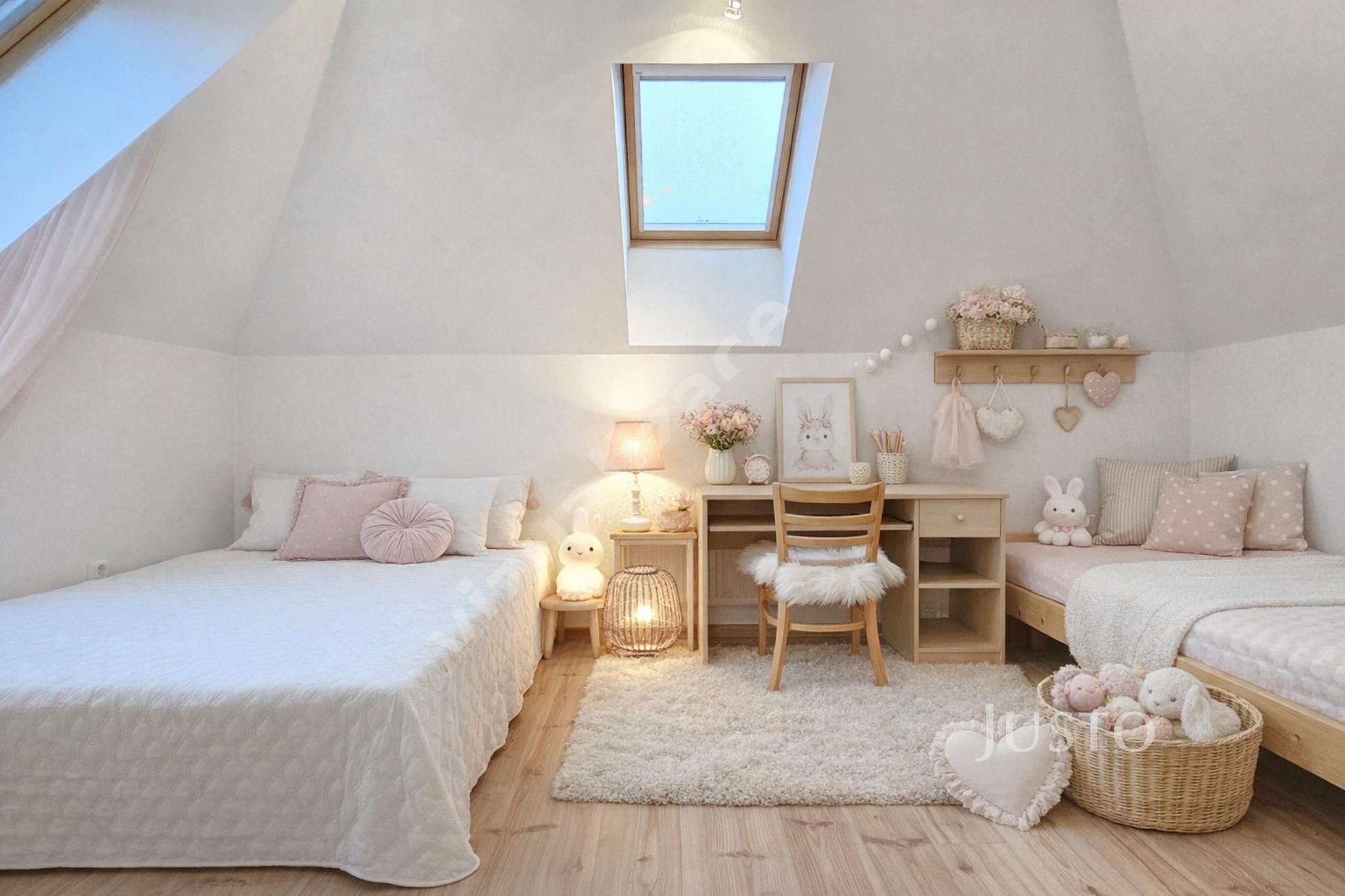 V podkroví Vás potěší šatna o výměře 2,8 m². Dále jsou zde dvě prostorné ložnice 14,8 m² a 17,6 m². Koupelna je s toaletou, bidetem, rohovou vanou, přímo odvětrána oknem. Ložnice v podkroví jsou plnohodnotné a bez výrazně snížených šikmých stropů, takže působí vzdušně, prostorně a nabízejí plnohodnotné využití každého metru čtverečního.