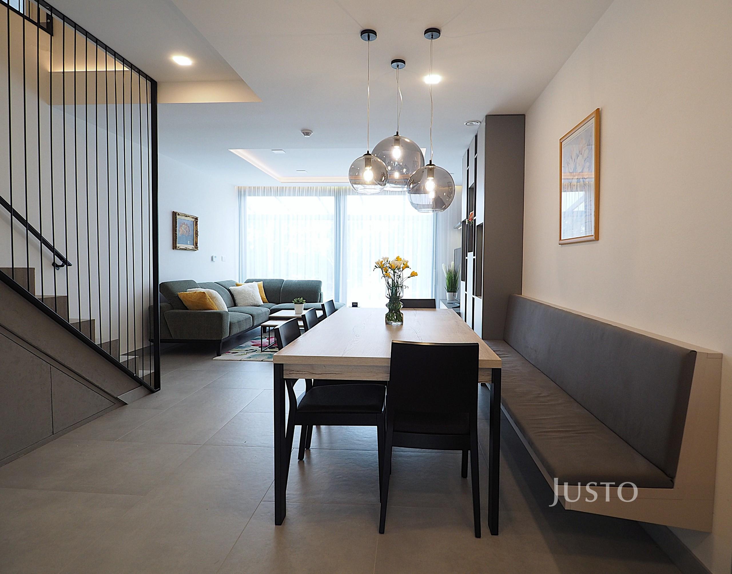 - Interiér domu je vybaven kvalitním nábytkem a prvky zhotovenými na míru, které podtrhují moderní vzhled a zajišťují maximální funkčnost