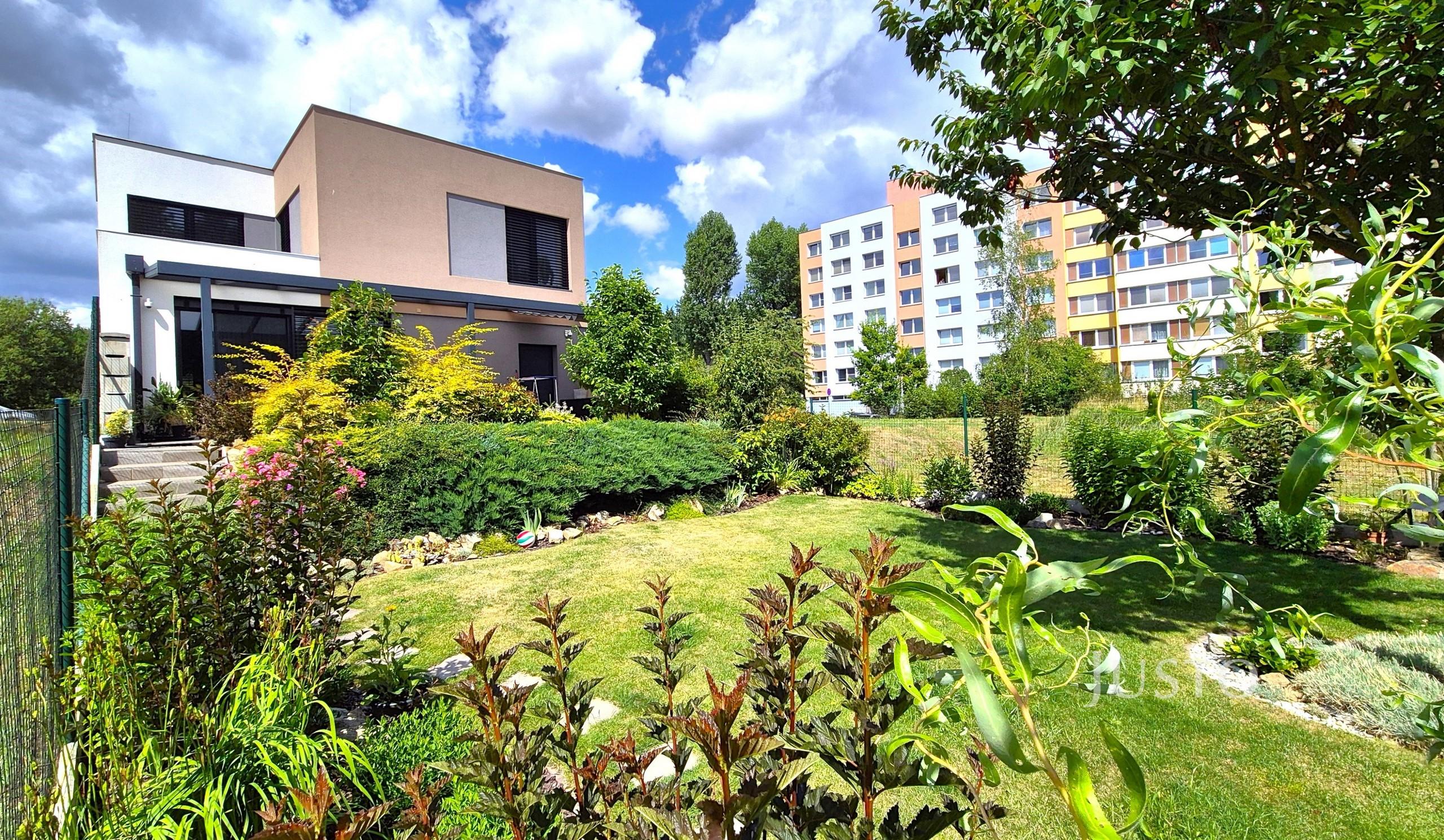 - Oplocená zahrada s terasou orientovanou na jih, která zajišťuje dostatek slunce po celý den a příjemné místo pro odpočinek, grilování či rodinná posezení
