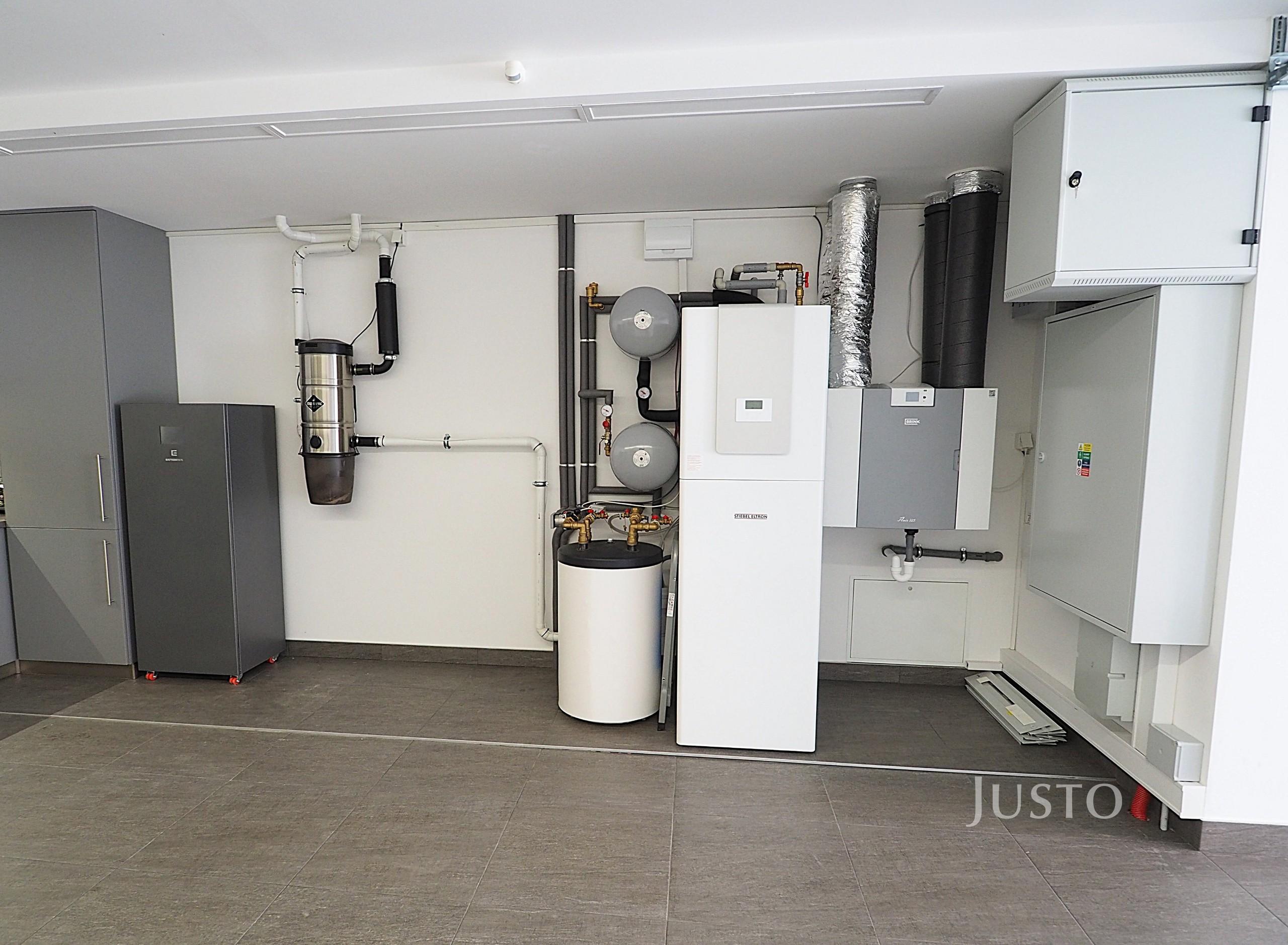 - Inteligentní podlahové topení a chlazení s ekvitermní regulací podle počasí (dům má vlastní meteostanici)