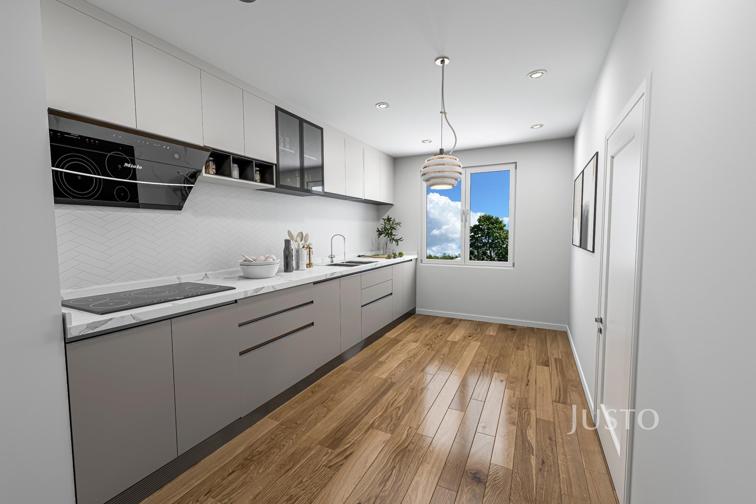 1. patro: kuchyně, obývací pokoj, ložnice, prostorná koupelna s vanou, balkon do ulice, 63,6 m²