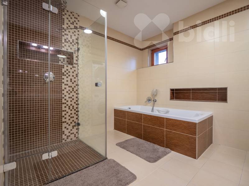 rád bych Vám představil prostorný rodinný dům s dvěma bytovými jednotkami. Dům je umístěn na pozemku o velikosti 1. 542 m² se zastavěnou plochou domu 168 m². Prošel rozsáhlou rekonstrukcí v letech 2013 až 2015, během které byla kompletně obnovena střecha, vyměněna okna za trojskla, zateplení, veškeré rozvody, položeny nové podlahy, masivní interiérové dveře, kuchyně, velká koupelna včetně vany a sprchového koutu.