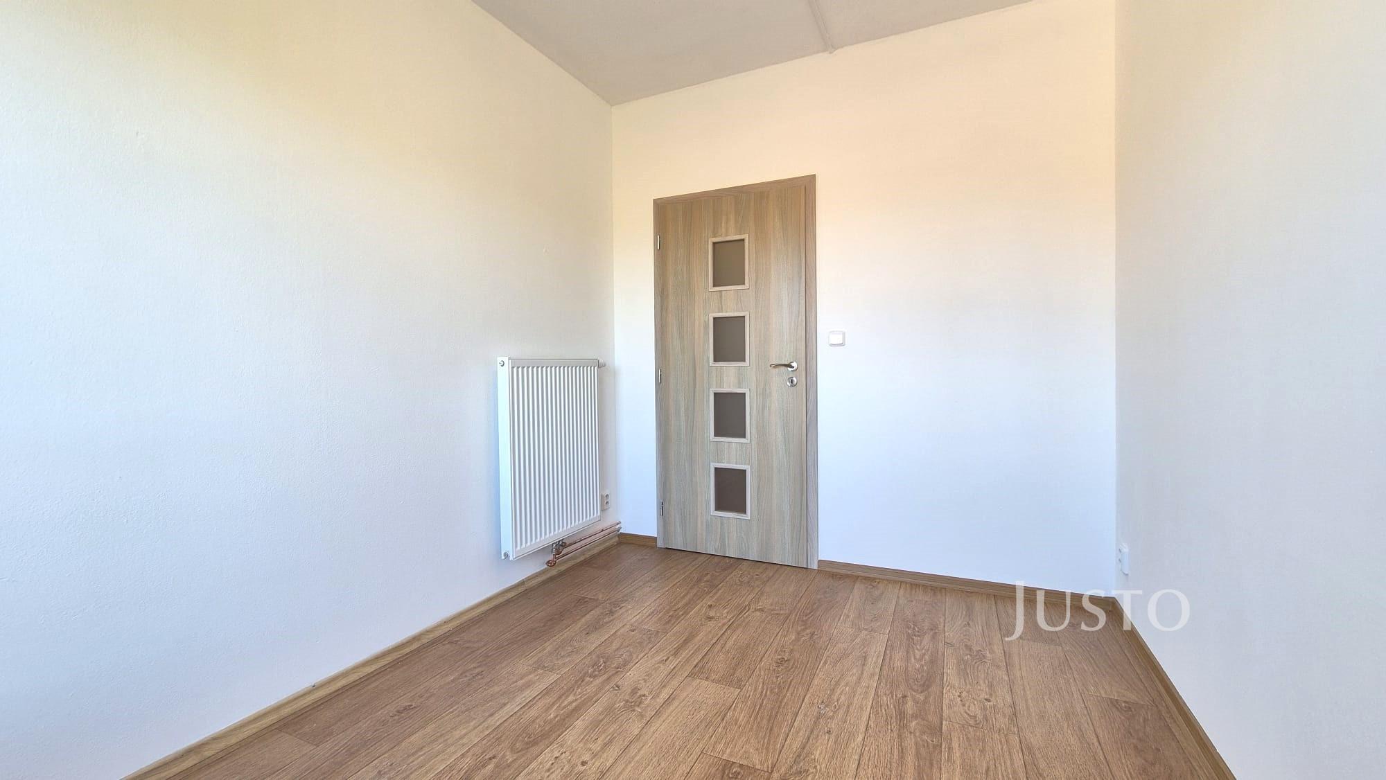 Dispozice bytu je prakticky řešena a nabízí světlý obývací pokoj s kuchyňským koutem, samostatnou ložnici, vstupní předsíň, koupelnu se sprchovým koutem a toaletou a rovněž komoru (šatnu), která poskytuje dostatek úložného prostoru.