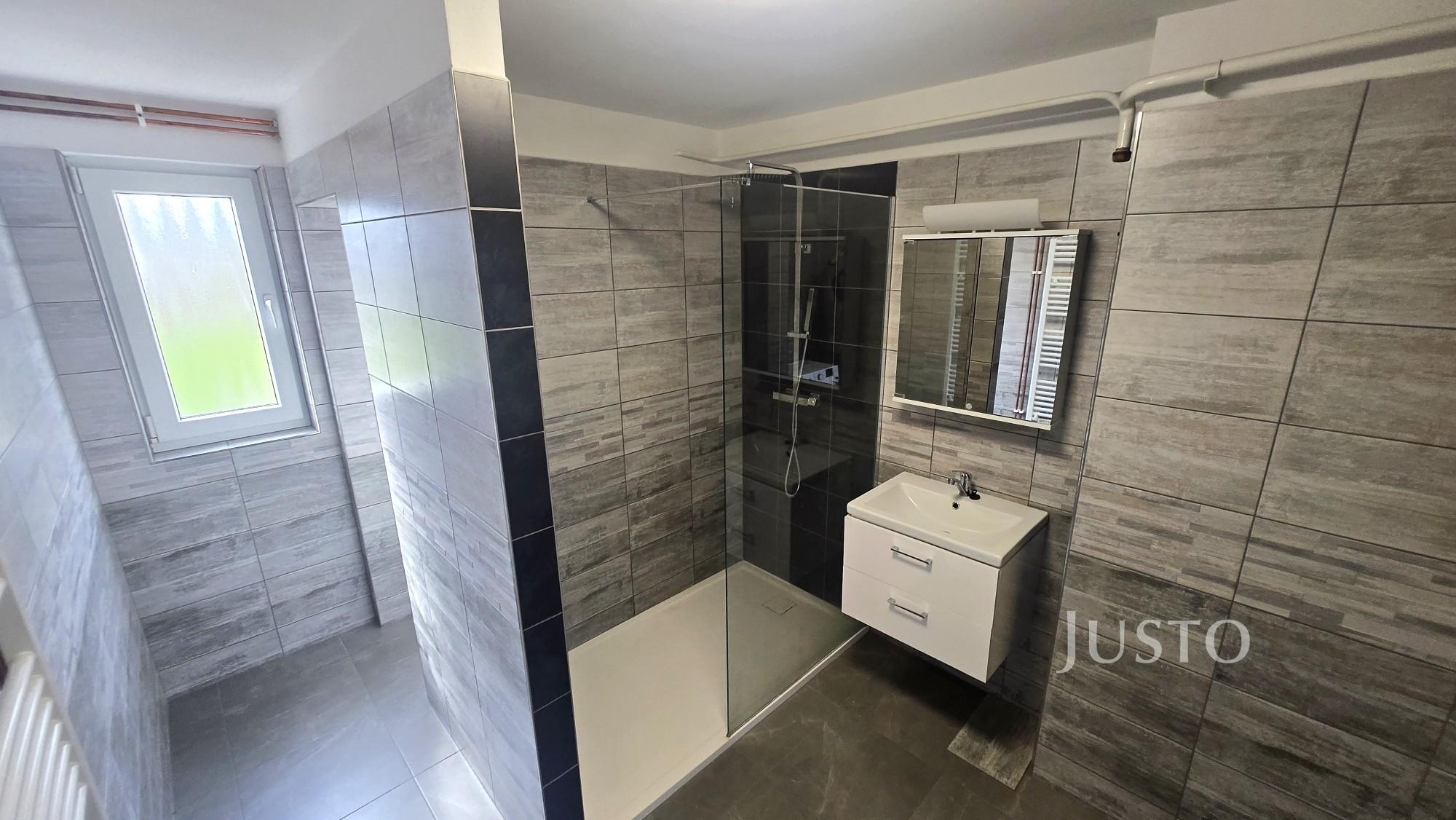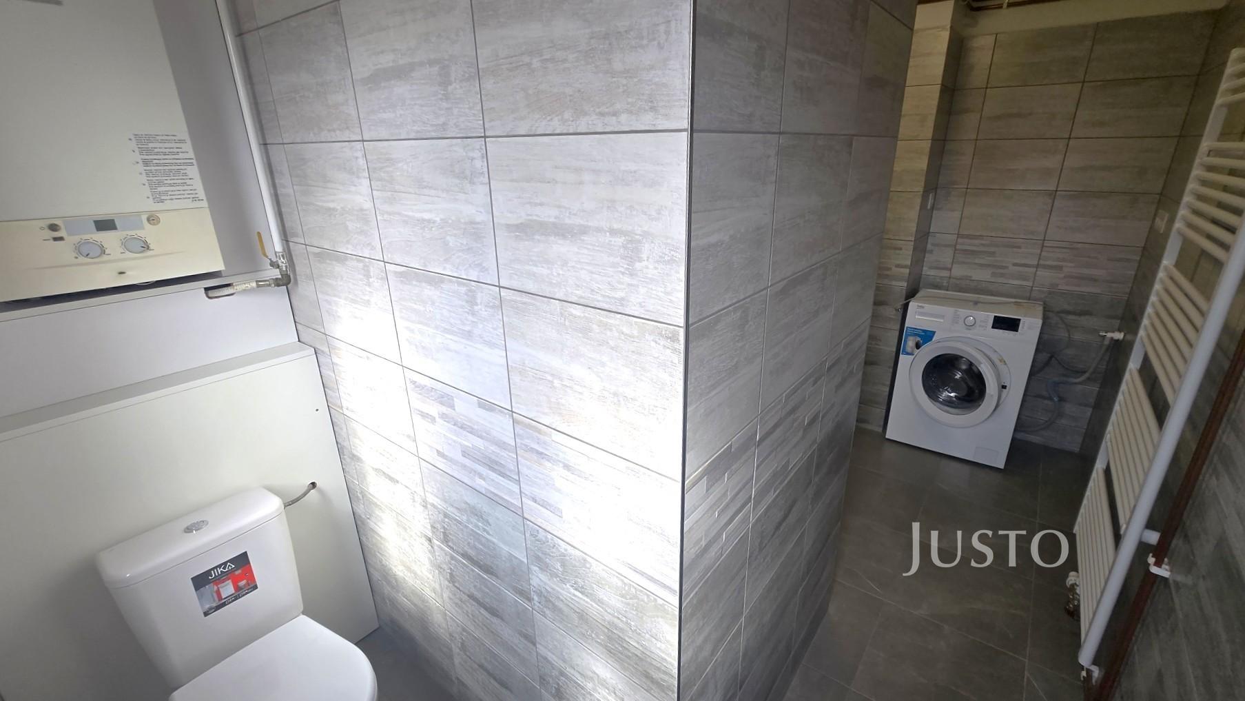 Koupelna je vybavena sprchovým koutem a pračkou, WC je samostatné (umístěné za zdí koupelny), což zvyšuje komfort bydlení.