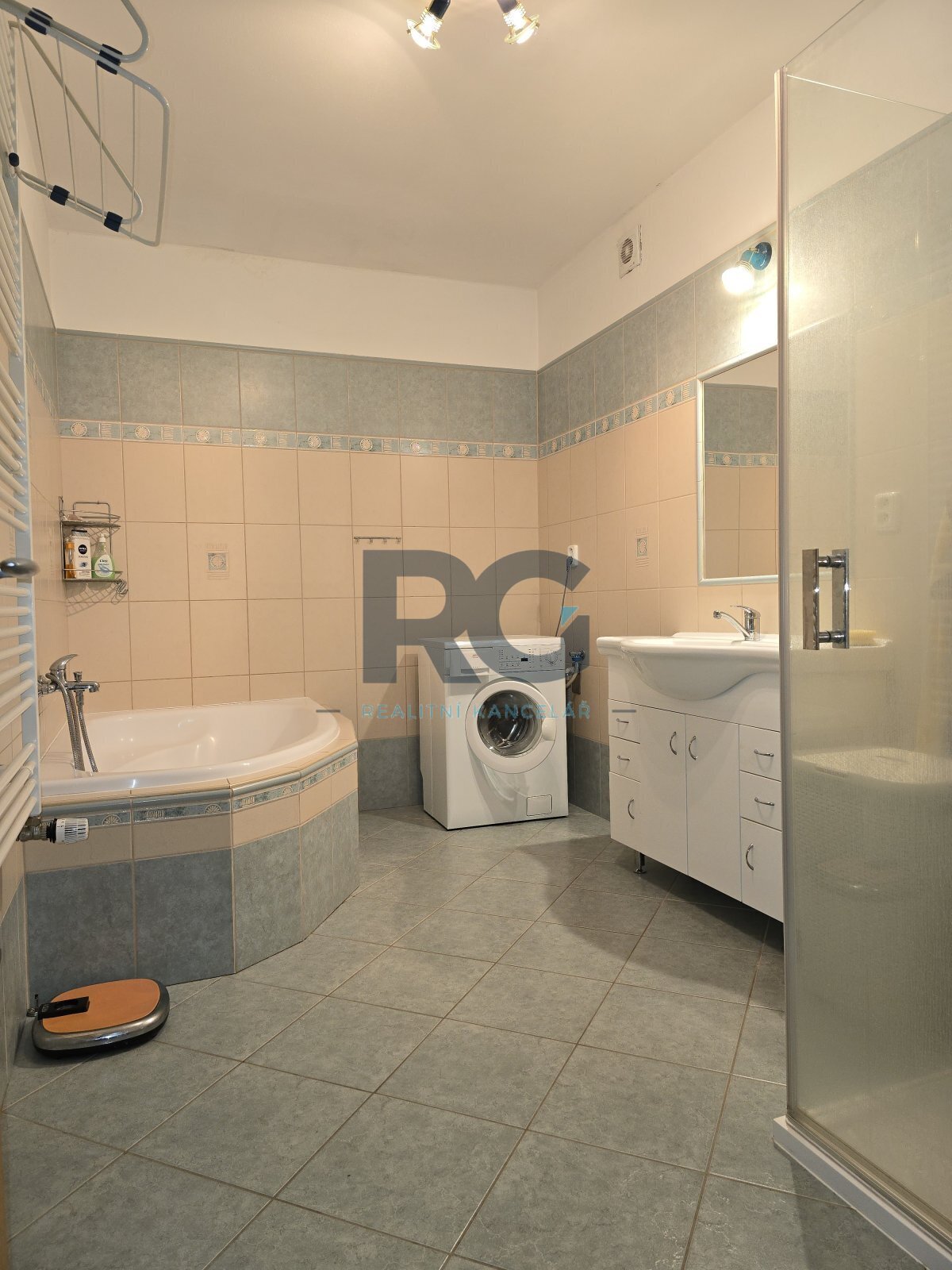 Byt je vybaven kuchyňskou linkou včetně všech spotřebičů (trouba, varná deska, digestoř, lednice s mrazákem, myčka nádobí, mikrovlnná trouba). V koupelně je rohová vana i sprchový kout, k dispozici je pračka. Toaleta je samostatná. Celý byt je vybaven nábytkem. Podlahy v celém bytě je plovoucí, v koupelně, kuchyni a chodbě je dlažba. Vytápění včetně ohřevu vody je zajištěno vlastním plynovým kondenzačním kotlem.