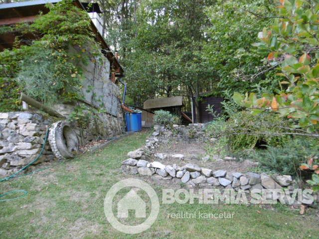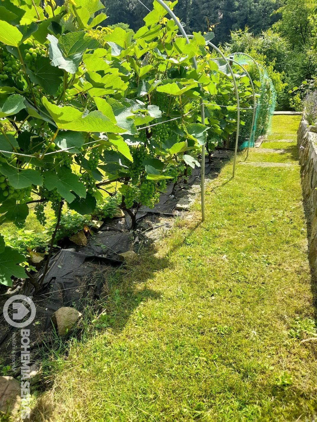 při práci na zahrádce nebo jen při lenošení v pergole. Naše chatička je vsazena přímo do lesa a zahrada je mírně svažitá. Majitelka zde vystavěla překrásnou novou pergolu a zahrádka je celkově upravena do terasovitých bloků. Chatička je napojena na elektřinu i vodu, WC je suché, topí se tuhými palivy. Vedle chatičky je domeček na nářadí, voda ze střechy je svedena do 1000l nádrže a čerpadlem pak obstarává závlahu pro pěstování. Dispozice: teráska, vstup do obytné místnůstky, kuchyňka a nahoře spaní pro návštěvu či děti. Prostorná pergola pod chatičkou má gril, krb i udírnu, nedávno kupované vybavení (stůl a dřevěné židle). Celkově je prostředí, troufám si napsat kouzelné a vhodné pro milovníky klidu a přírody. Do města kousek, penzion U Malířských pár metrů a kolem moře krásné přírody. Jakou úrodu lze vypěstovat vidíte na přiložených fotkách.