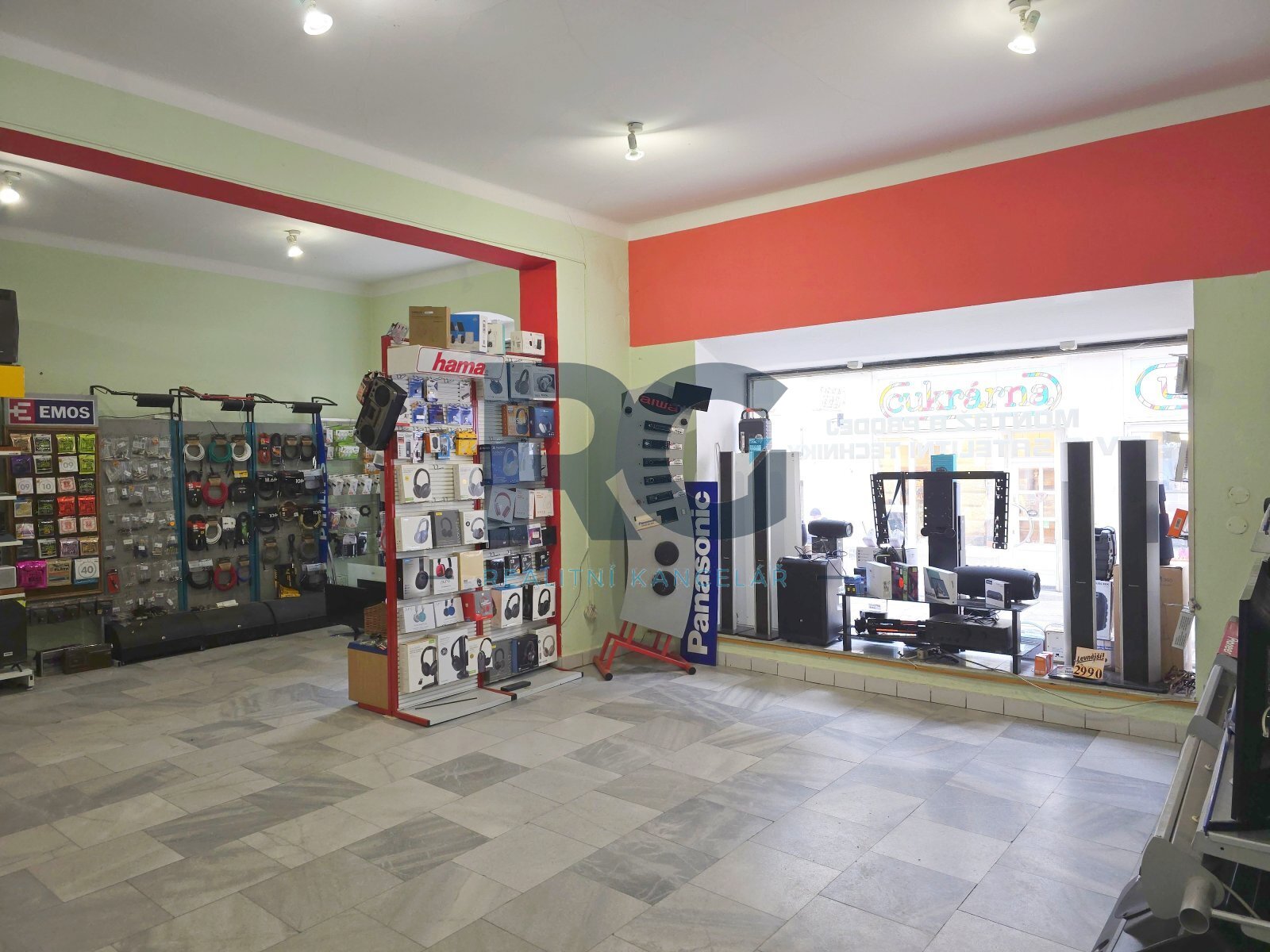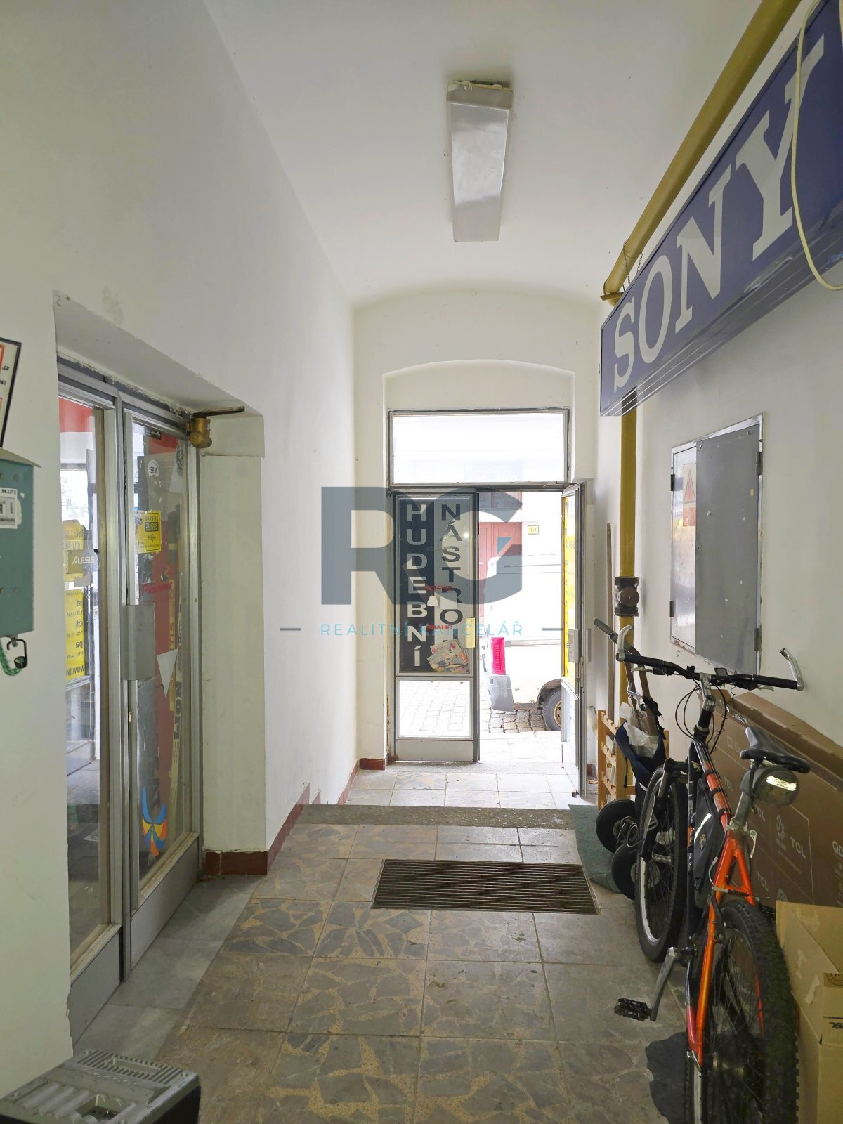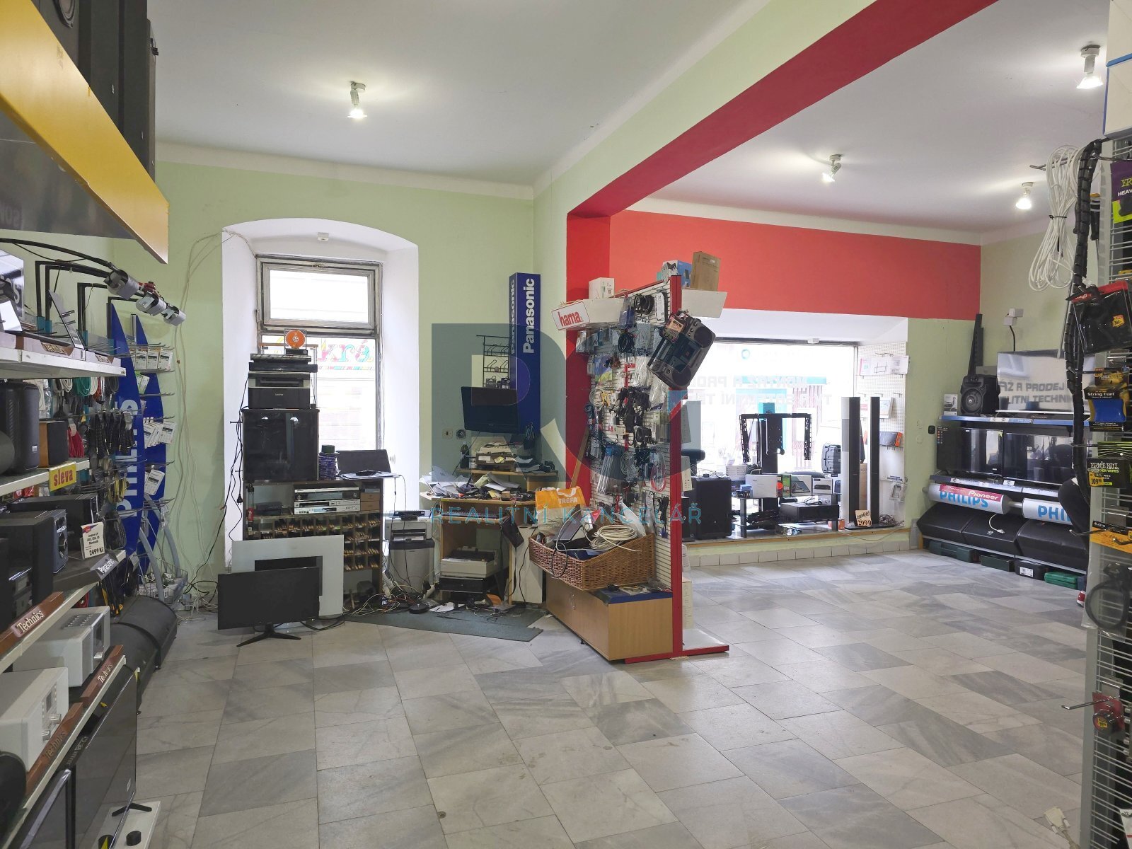 Celý prostor tvoří 2 propojené prodejní plochy o výměrách 52,3 m2 a 32,6 m2 s dvěma výkladci do ulice, dále je k dispozici sklad o výměře 28,4 m2, šatna o výměře 6,9 m2 a sociální zázemí o výměře 1,7 m2. V případě potřeby je možné částečně využít i vstupní chodbu a zádveří domu.