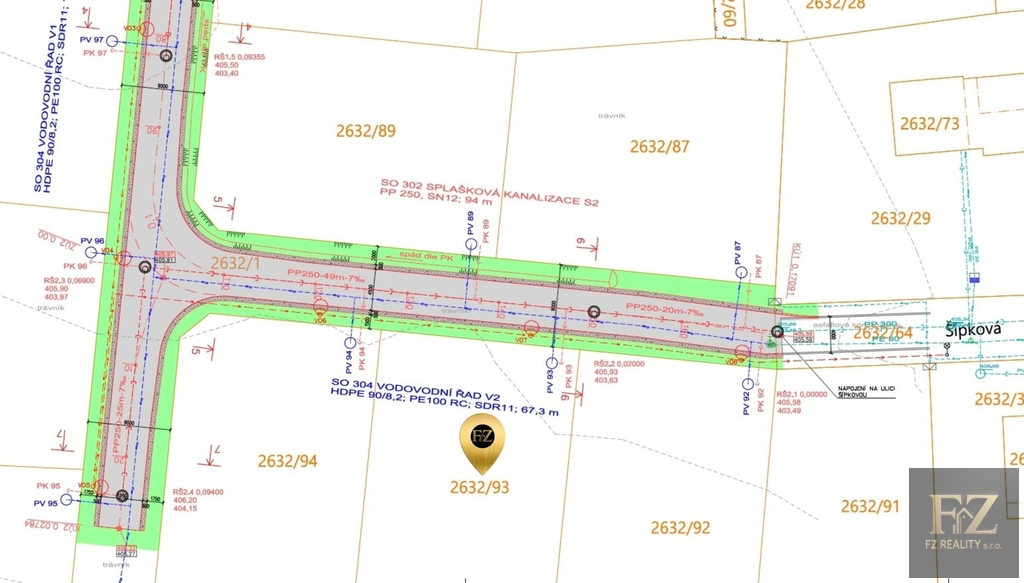 Součástí ceny pozemku je i vybudování nových inženýrských sítí (voda, elektřina, kanalizace), přivedených k hranici pozemku v rámci realizace nové obecní komunikace s veřejným osvětlením.