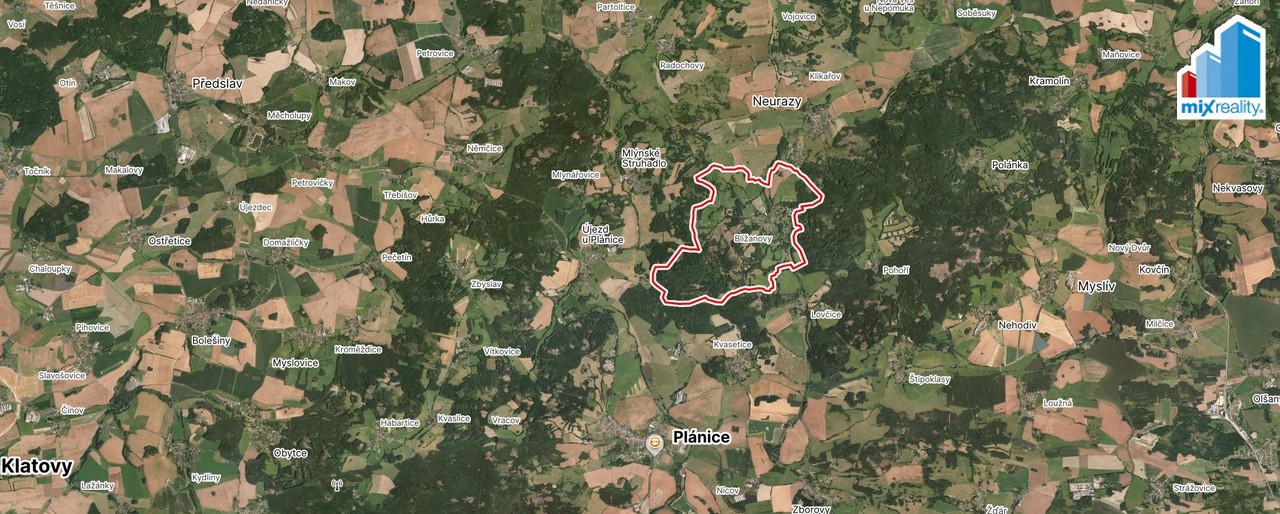 Prodej - Zahrada - pozemek o výměře 5131 m² v malebné obci Bližanovy, okres Klatovy