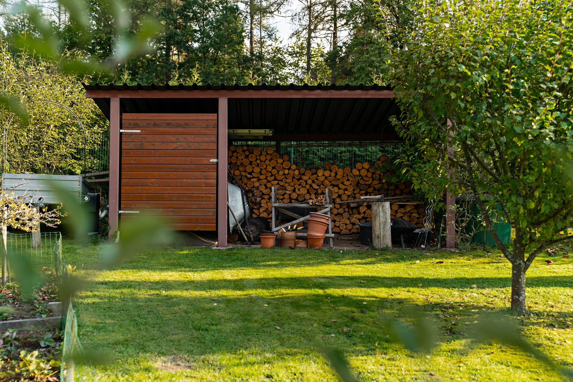 - zahradní domek s teráskou, velký sklad vedle terasy domu - celkově mnoho úložných prostor a prostoru pro vybudování dílny a podobně