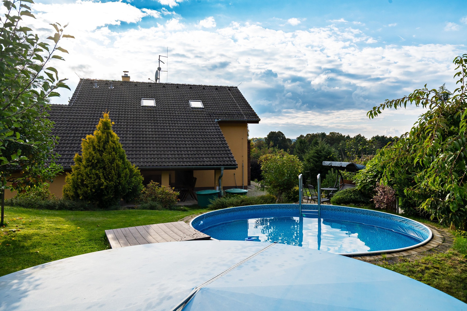 - krásná udržovaná zahrada domu, bazén