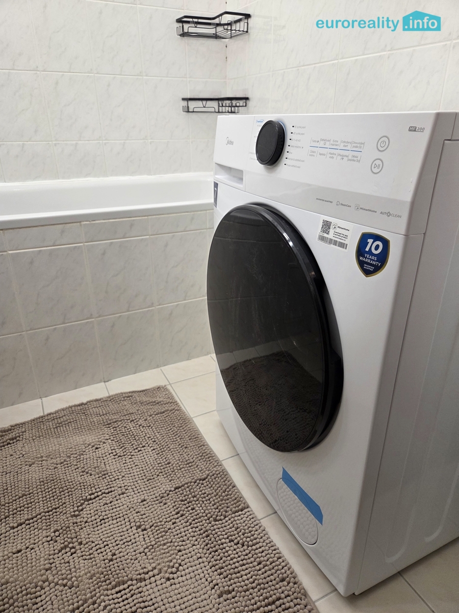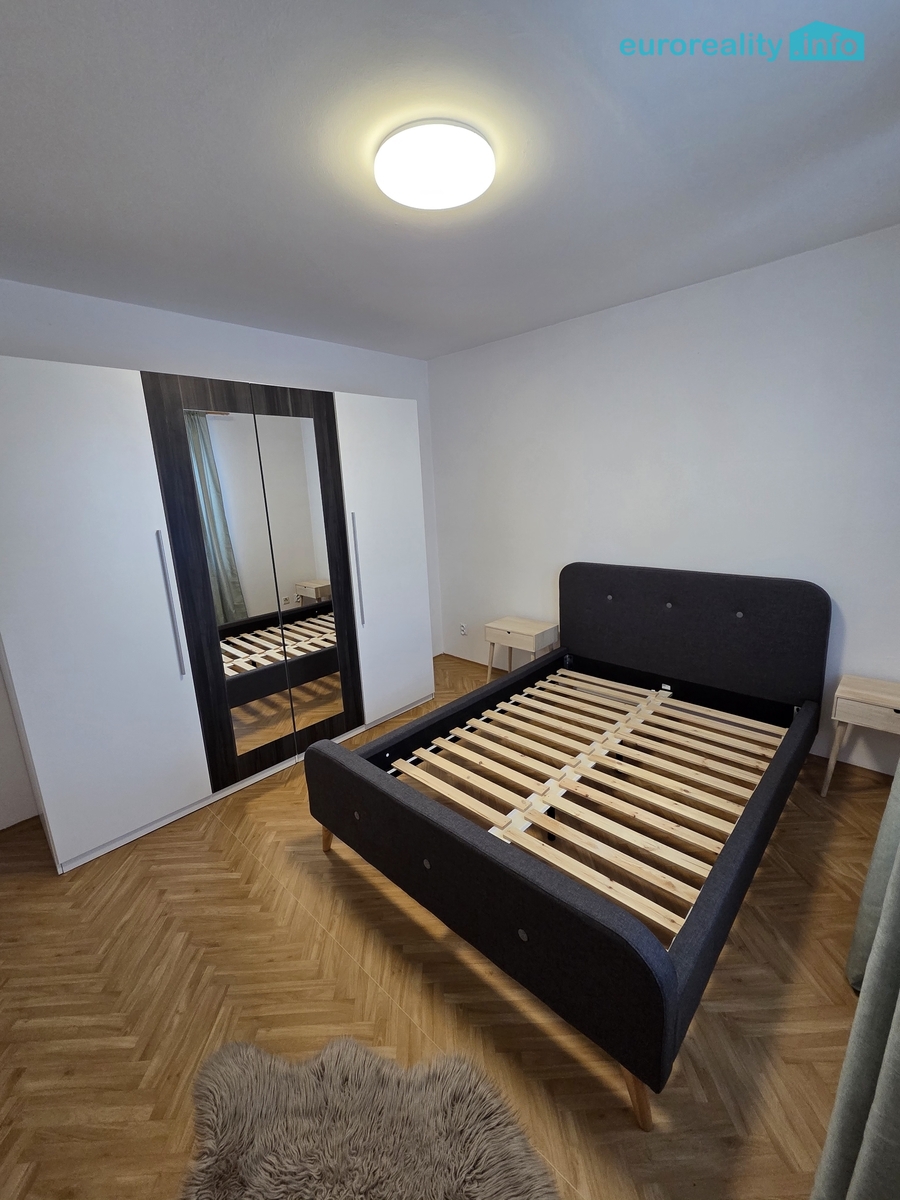 Kuchyně je vybavena kuchyňskou linkou, elektrickým sporákem, lednicí, barovou sestavou. Ložnice velkou šatní skříní, manželskou postelí (bez matrací). Zděná koupelna pračkou a vanou. WC je samostatné. Okna jsou orientována na východní stranu, díky čemuž je byt příjemně prosvětlený ranním sluncem.