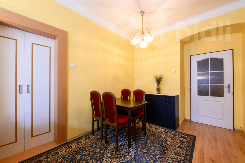 Pronájem vybaveného bytu 2kk o celkové výměře 59,6 m2 se nachází ve 2. patře zděného bytového domu. V bytě je předsíň, obývací pokoj s jídelnou, kuchyň, ložnice, koupelna se sprchovým koutem a samostatným WC. Byt prošel v minulosti