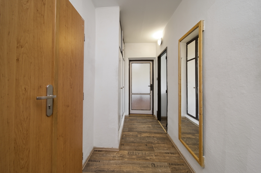 K prodeji nabízíme byt 1+1 v Plzni na Slovanech, ulice Chválenická. Bytová jednotka o výměře 39 m2 je situována do 3. nadzemního podlaží (z celkových 7) zatepleného panelového domu s výtahem. Je členěna na pokoj, kuchyň, koupelnu, oddělené WC a předsíň. Vytápění je ústřední, stejně tak i teplá voda je dodávána dálkově. Jsou zde nízké provozní náklady, fond oprav činí 25 Kč/m2. K bytu náleží zděný sklep.