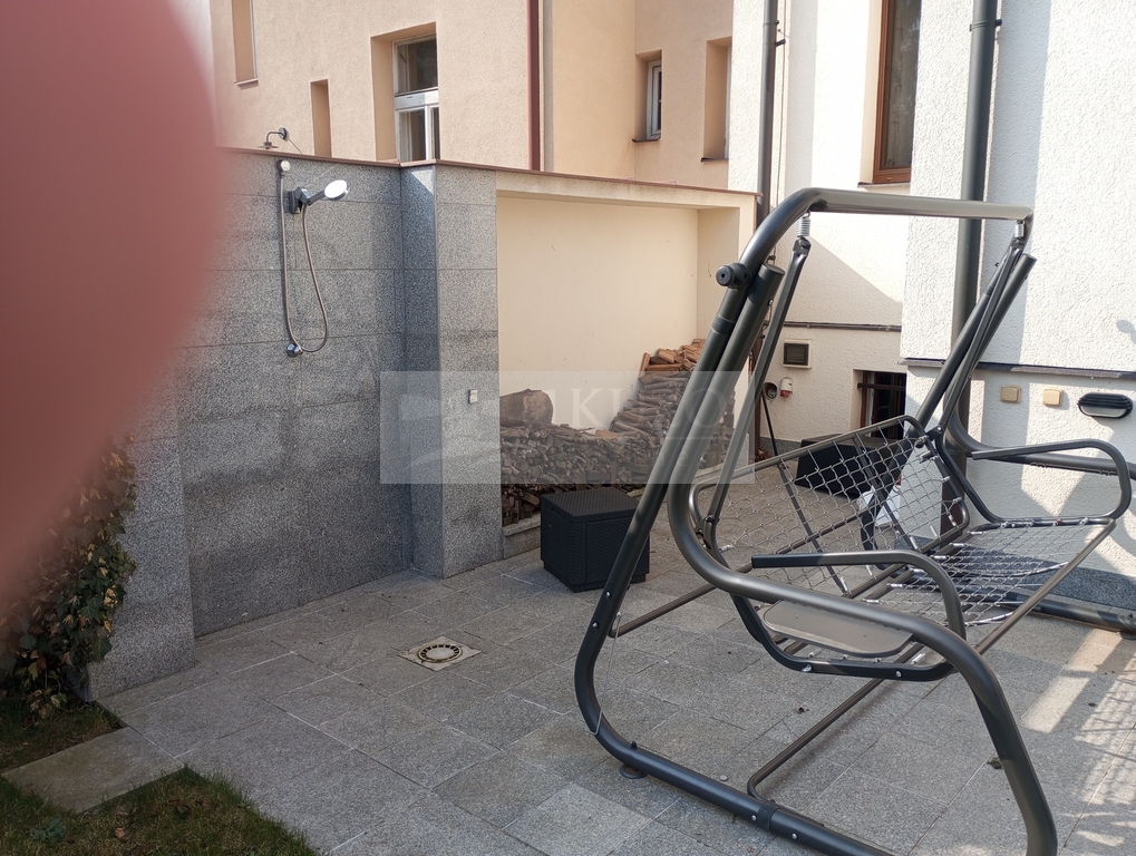 K bytu náleží rovněž sdílená prostorná terasa o ploše 28 m², která je ideálním místem k relaxaci a trávení volného času. K dispozici je také sdílená velká zahrada, vybavená zahradním nábytkem a ocelovým ohništěm, což poskytuje možnosti pro příjemné venkovní aktivity a grilování s přáteli. Terasa je dále vybavena venkovní sprchou, což oceníte zejména v letních měsících.