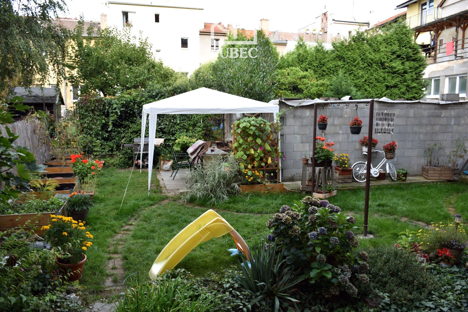 K bytu náleží sklep o velikosti 3,7 m². V domě mohou nájemníci využívat také sušárnu prádla, kolárnu a upravenou zahrádku s pergolou ve vnitrobloku.
