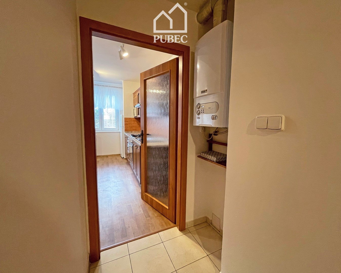 Byt o velikosti 39 m² se nachází ve zvýšeném přízemí klidného, menšího činžovního domu. Dispozičně je řešen jako obývací pokoj s kuchyňským koutem, vstupní předsíň, koupelna s vanou a WC a prakticky oddělený prostor na spaní. Ten je oddělen příčkou a nabízí nově instalované vestavěné skříně s dostatkem úložného prostoru.
