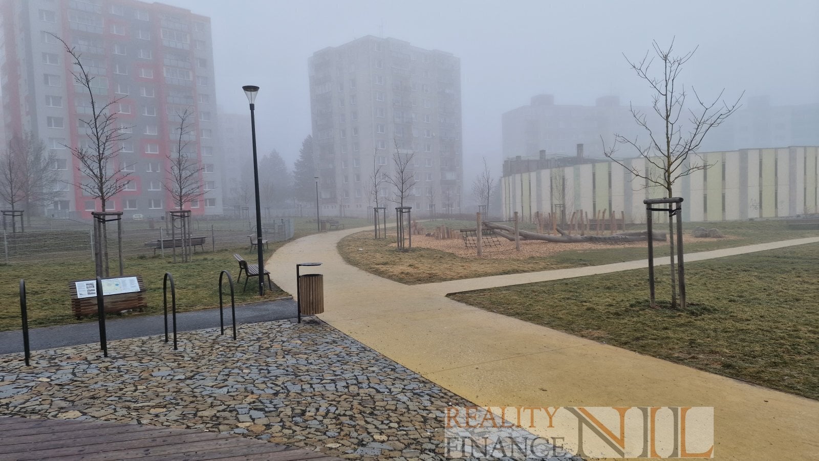 Velkou předností je dobré dispoziční řešení s prostornými pokoji. Za domem je park a hřiště pro děti, základní škola také hned za domem.