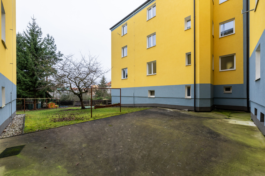 Byt je kompletně orientován do dvorního traktu a je tak chráněn předním uličním blokem domu před městským ruchem z hlavní ulice. Díky tomu nabízí příjemné a nerušené bydlení v lokalitě s kompletní občanskou vybaveností a výbornou dopravní dostupností.