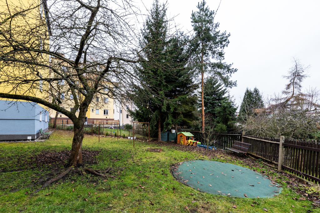 K bytu dále náleží sklepní kóje (5 m²). K dispozici je také společná zahrada ve vnitrobloku domu.