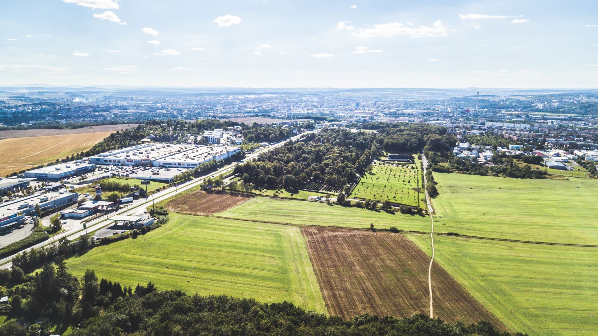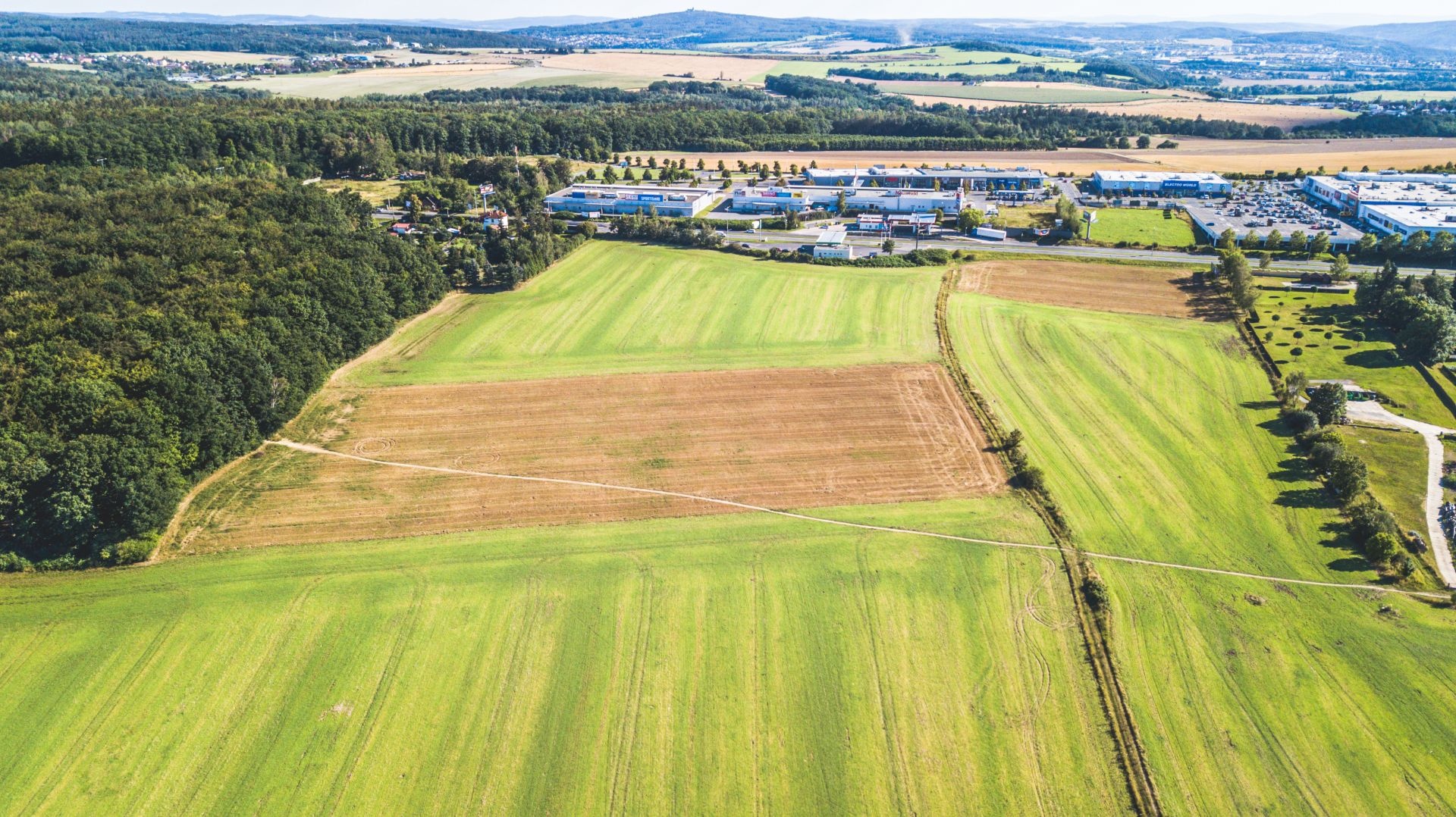 Komerční pozemky určené pro stavbu obchodních zařízení na hlavní třídě v Plzni