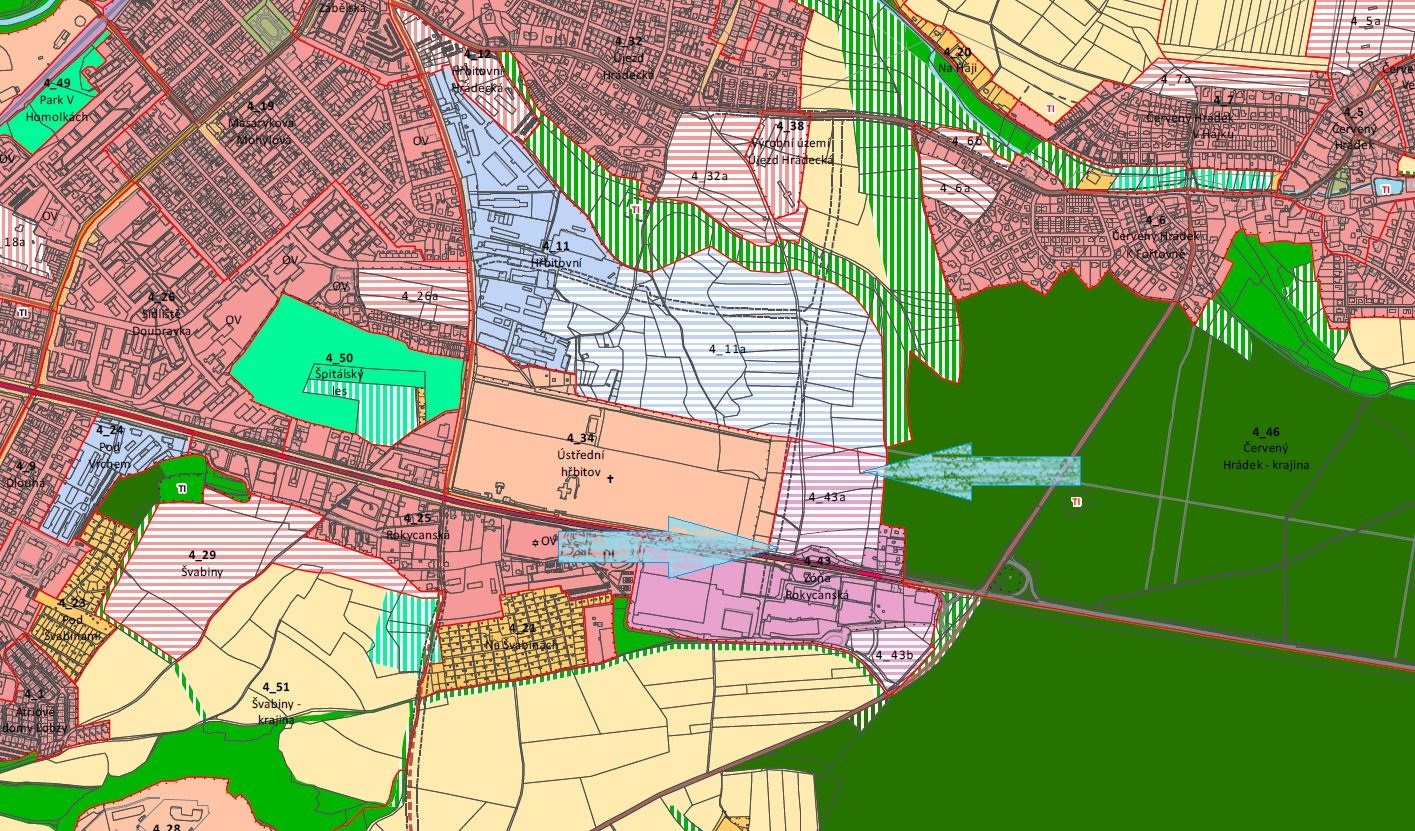 Předmětem prodeje jsou komerční pozemky na atraktivním místě v Plzni, Rokycanské třídě. Pozemky se nachází v zastavitelném území určeném dle platného územního plánu pro stavby obchodu, služeb a výroby. Hlavním využití území jsou především stavby a zařízení pro obchodní účely. Jako stavby přípustné jsou stavby a zařízení pro výrobu 1. a 2. kategorie a pro služby nebo sklady a skladovací plochy. V roce 2020 nechalo město Plzeň vypracovat územní studii na toto území, ze které jsou zřejmé přesnější definice využití území označené v územním plánu pod číslem 4_43a a v územní studii pod písmenem M.