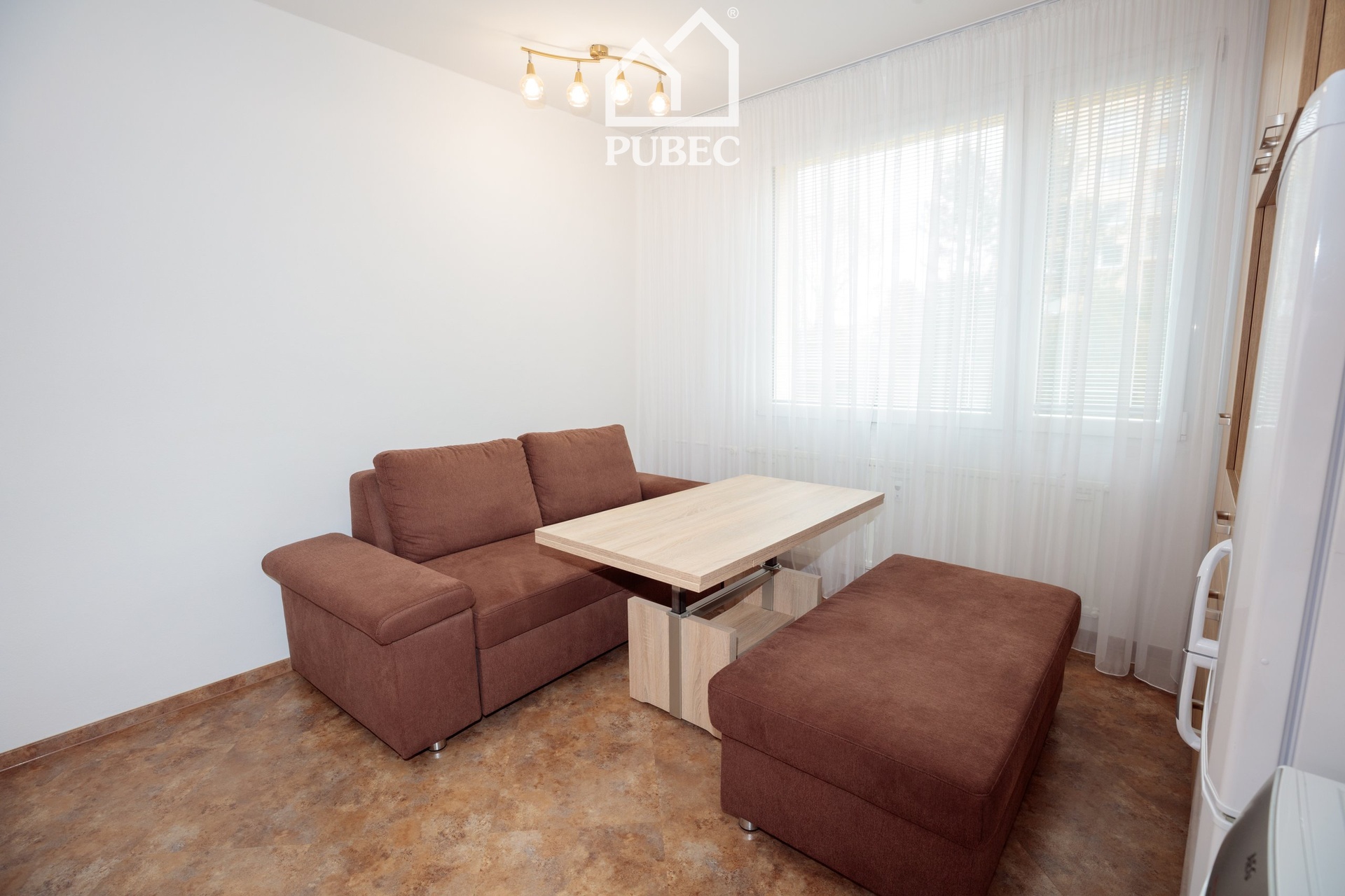 Bytová jednotka je členěna na vstupní předsíň, prostornou obývací místnost s kuchyňským koutem a ložnici. Dále je zde k dispozici koupelna s vanou a WC. Kuchyňský kout je vybaven kuchyňskou linkou včetně el. trouby, plynové varné desky, digestoře s filtrací, pračky a ledničky s mrazákem. Okna bytu jsou plastová, situovaná na jihovýchodní světovou stranu. Podlahy kryje vinyl a dlažba. Vytápění a ohřev teplé vody jsou zajištěny dálkově.