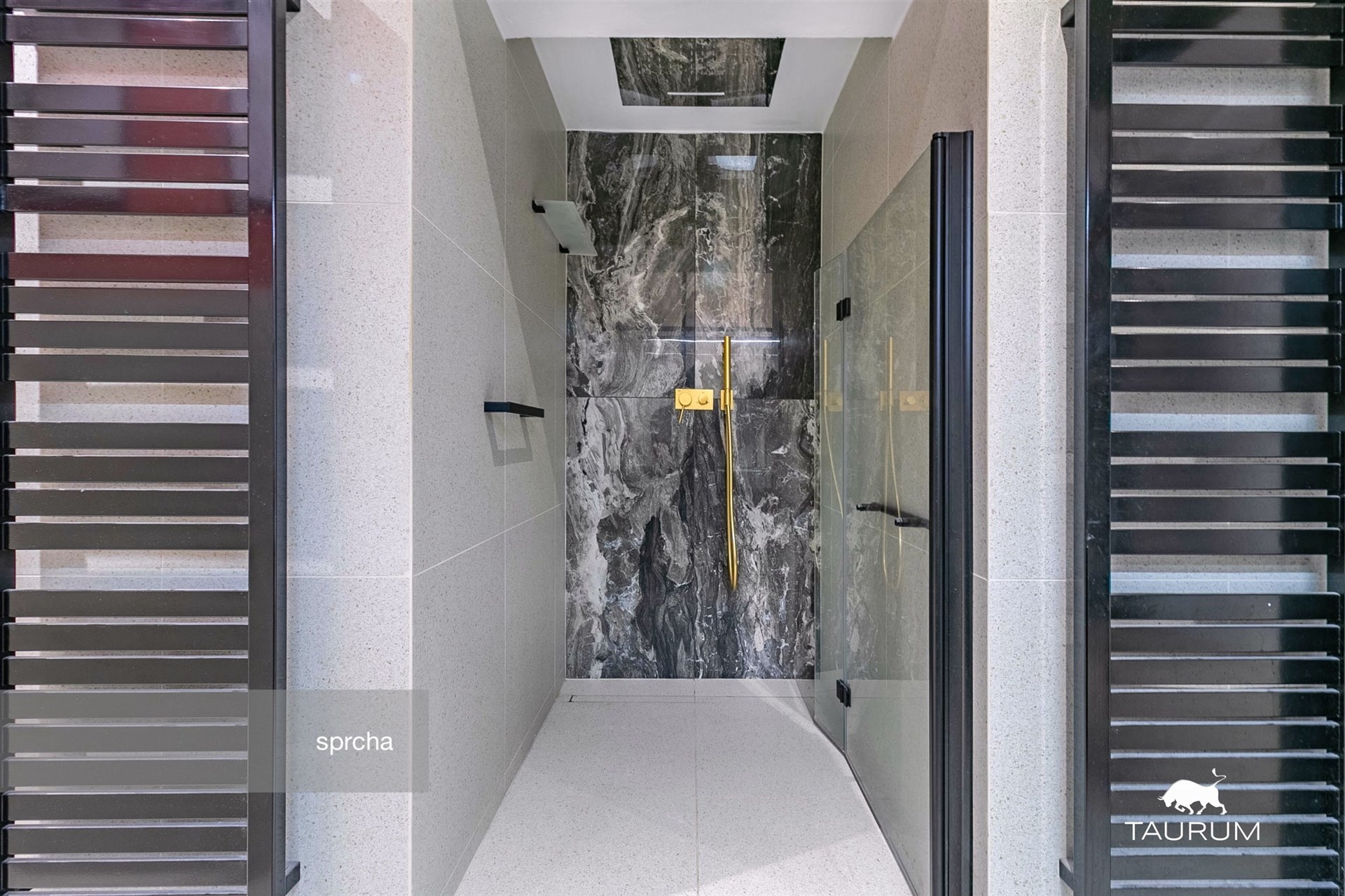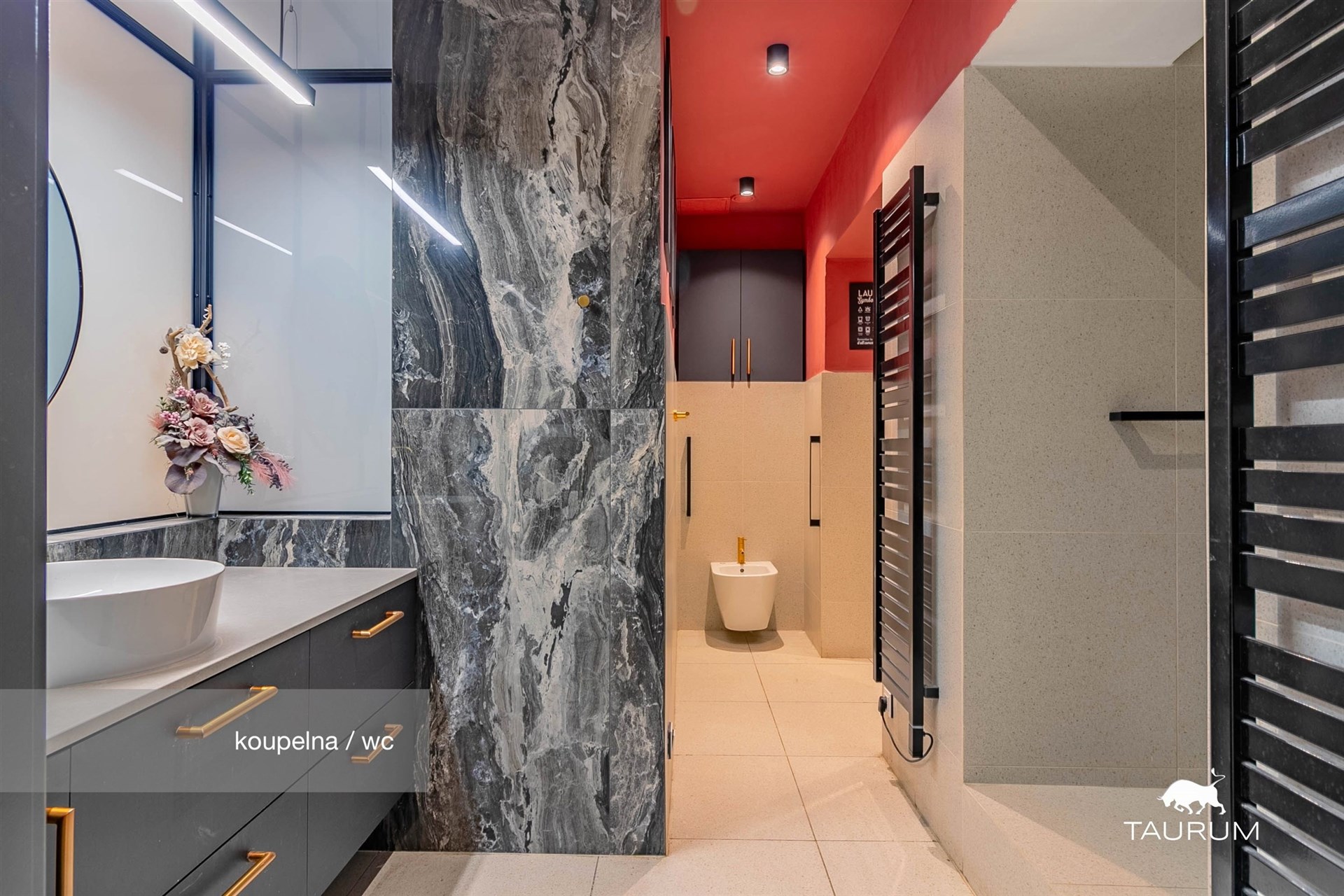 Byt dále disponuje dvěma samostatnými šatnami a velkými vestavěnými skříněmi. Luxusní koupelna je navržena s důrazem na detail – najdete zde kvalitní materiály a elegantní design.