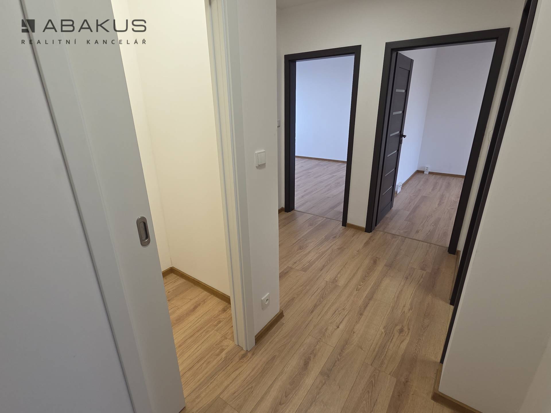 Dispozice bytu – 3+kk + lodžie: Předsíň (7,9 m2), Obývací pokoj s kuch. koutem (20,3 m2), Ložnice - příp. větší dětský pokoj (16,8 m2), Dětský pokoj - příp. menší ložnice či pracovna (8,8 m2), Koupelna s WC (4,7 m2), Komora (1,8 m2), Lodžie (4,2 m2), Sklepní kóje v 1.PP (1,4 m2)