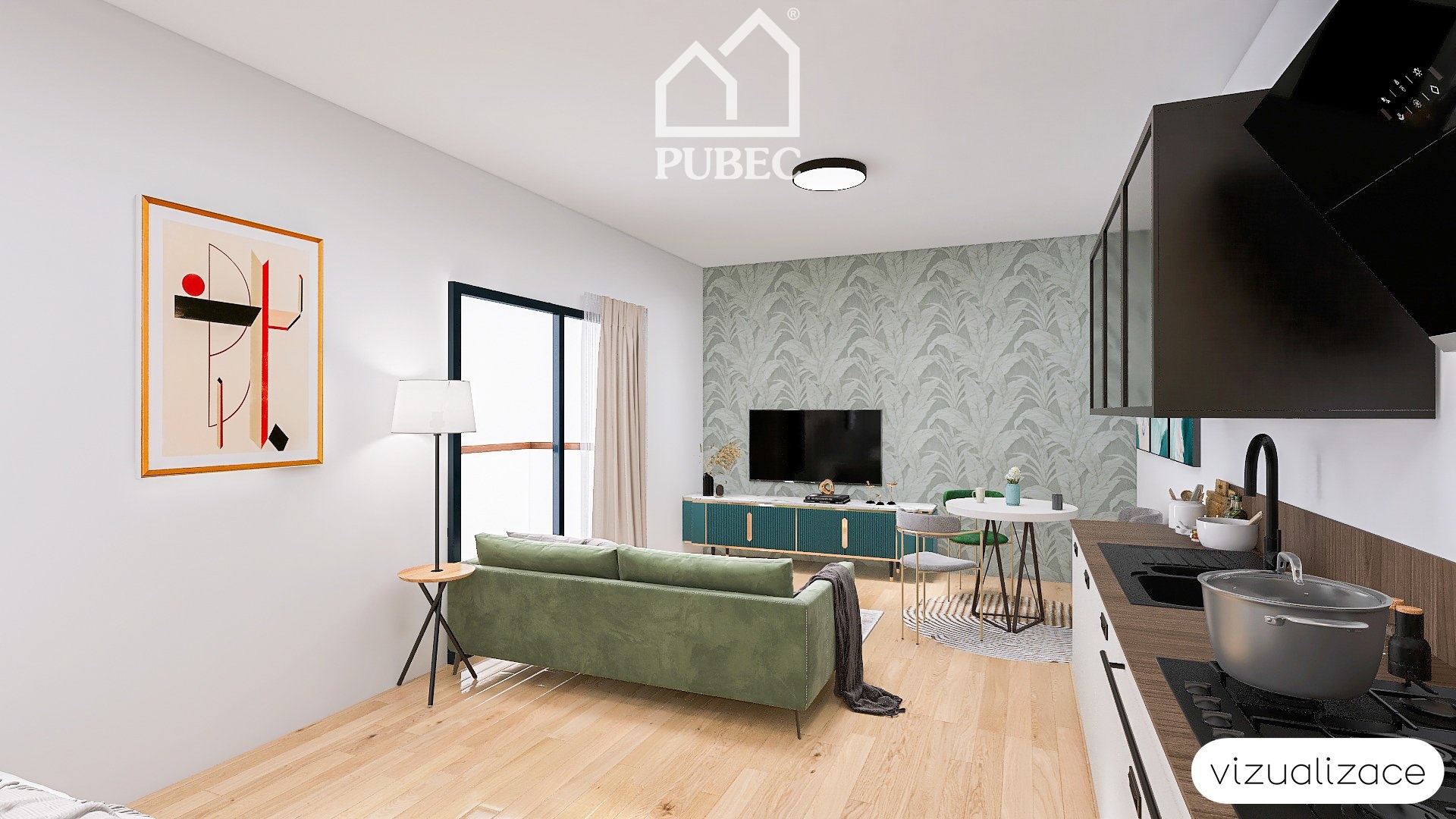 Předmětná jednotka 1+kk o výměře 38 m2 + balkon (5 m2) se bude nacházet ve 3. NP cihelného domu s výtahem.