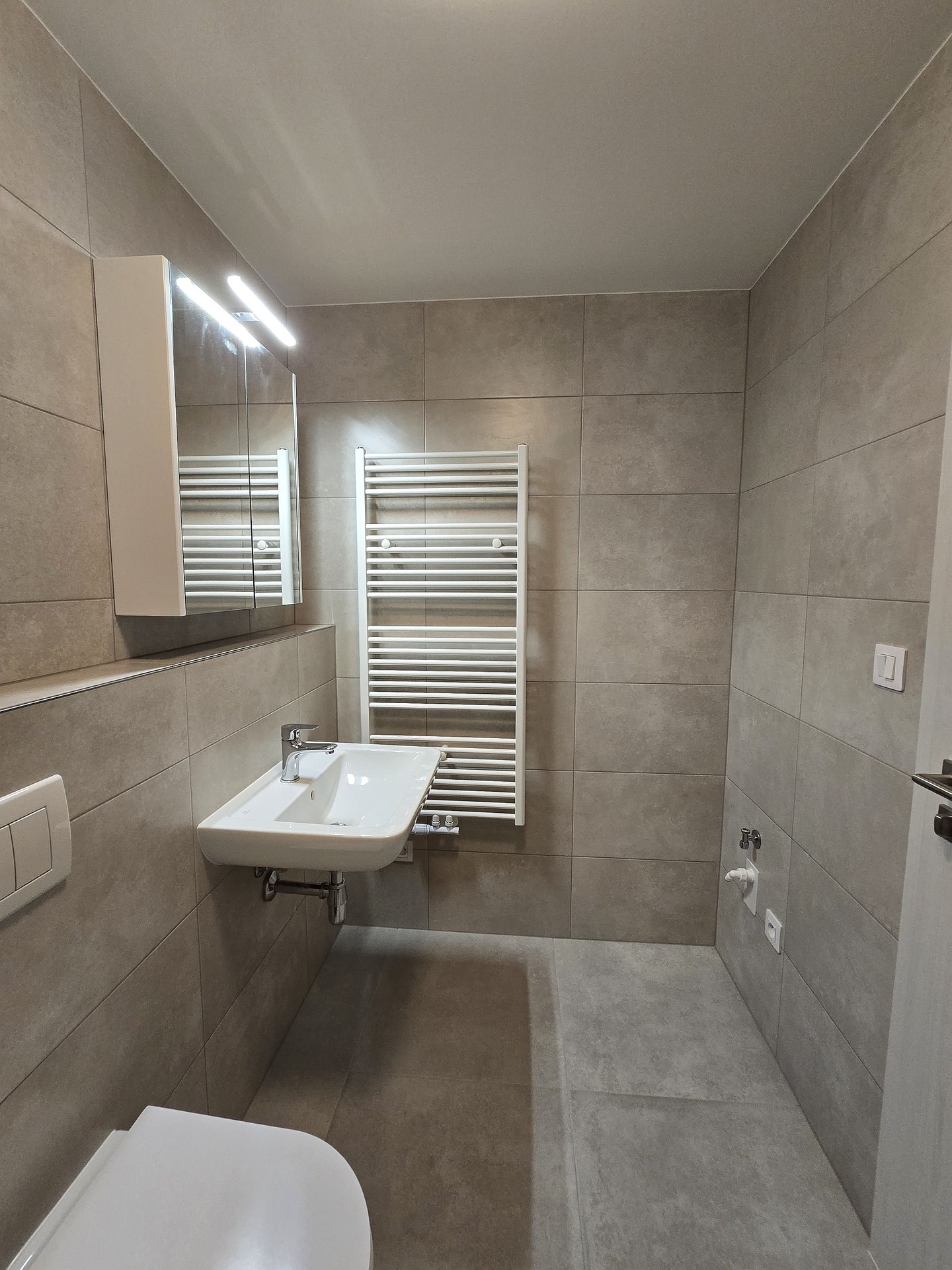 Vše, co potřebujete ke kvalitnímu bydlení. V kuchyňské části je kuchyňská linka vybavena vestavěnými spotřebiči jako je elektrická indukční varná deska, elektrická trouba, myčka, digestoř atd. V obytné části jsou velká okna zajišťující dostatek denního světla a příjemný výhled do okolí. V koupelně se sprchovým koutem, umyvadlem, topným žebříkem a toaletou je prostor pro umístění pračky. Velmi atraktivní je kombinace barev obkladů a dlažeb. Jedná se o velmi vkusně připravený byt.