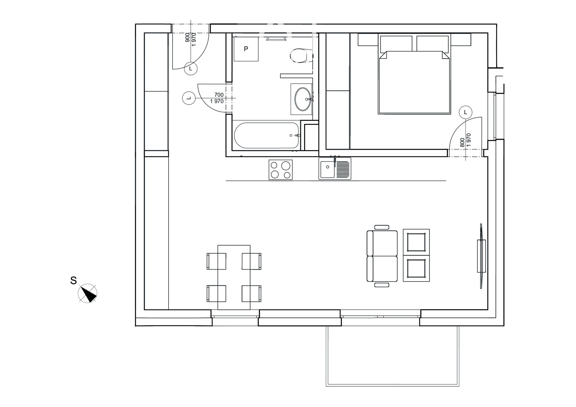 Orientace bytu - jih, vnitroblok.