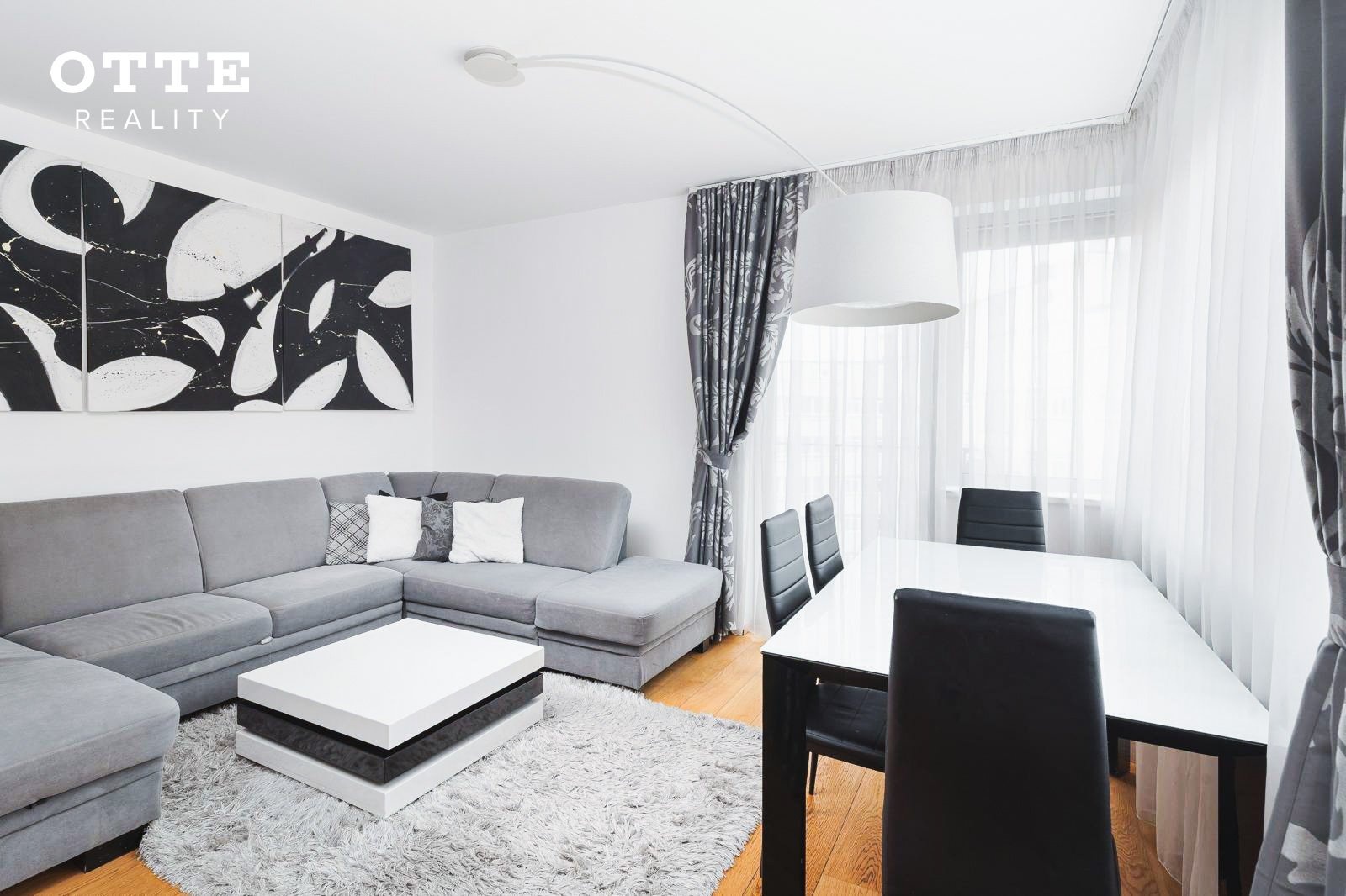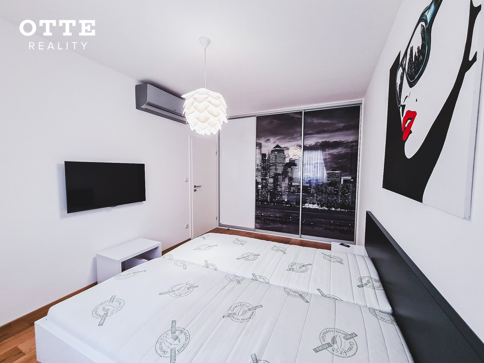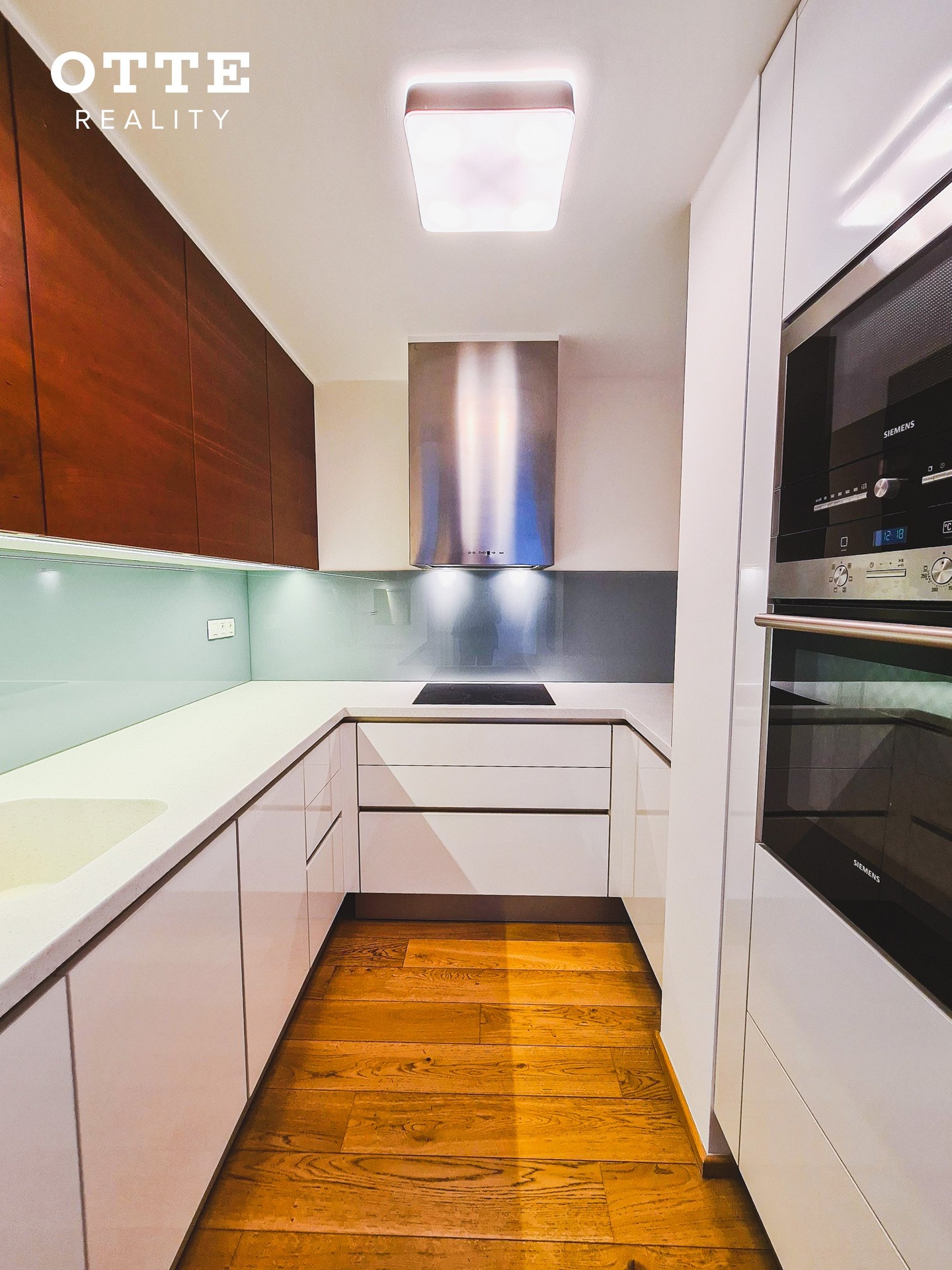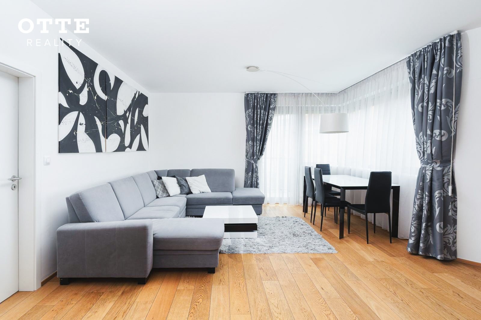 Byt je útulný a působí svěžím a moderním dojmem. Teplo a ohřev vody zajišťuje systém dálkové dodávky z teplárny. Podlahu kryjí dřevěné podlahy nebo dlažba, v oknech jsou vnitřní žaluzie. V bytě je umístěn videotelefon pro komunikaci s recepcí, samozřejmostí je internet, TV, SAT. Předmětem pronájmu a součástí ceny je také zděná sklepní kóje o velikosti 3,5 m2 umístěná na stejném podlaží domu jako je byt, vhodná pro uskladnění sportovních či sezónních věcí. Garážové parkovací stání ve druhém podzemním podlaží domu, ke kterému lze pohodlně dojet výtahem je za cenu 1.600 Kč/měsíc.
