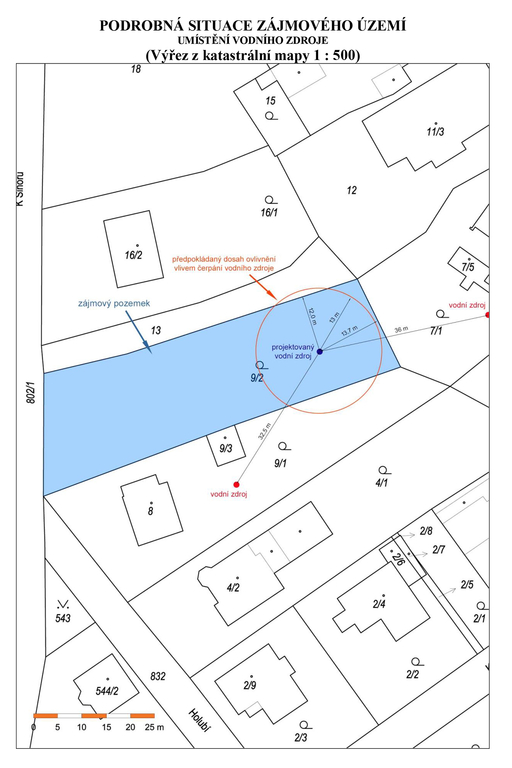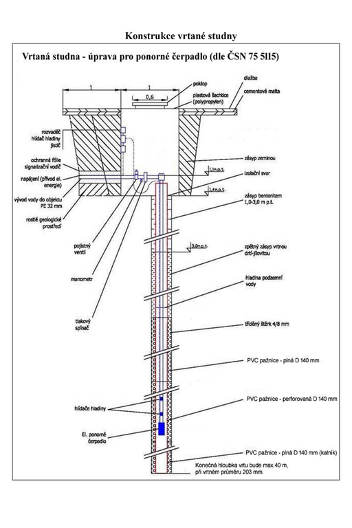 Podél hranice pozemku vede inženýrská infrastruktura: elektrická síť NN (ČEZ Distribuce), plynovod STL (GasNet), komunikační vedení (CETIN), splašková kanalizace (Plzeňský kraj) – k pozemku je již vedena odbočka z hlavního řadu, vodovod (VODÁRNA PLZEŇ), avšak napojení na vodovodní řad je v současné době pozastaveno. Do doby obnovení možnosti napojení je proto nutné vybudovat vlastní zdroj vody. Z tohoto důvodu byl zpracován hydrogeologický posudek vrtané studny a vyhotovena dokumentace pro povolení stavby „Vrtaná studna pro individuální zásobování vodou“. Navrhované parametry této stavby zahrnují vrtanou studnu do maximální hloubky 40 metrů, která zajistí dostatečnou dodávku vody pro plánovanou rodinnou výstavbu.