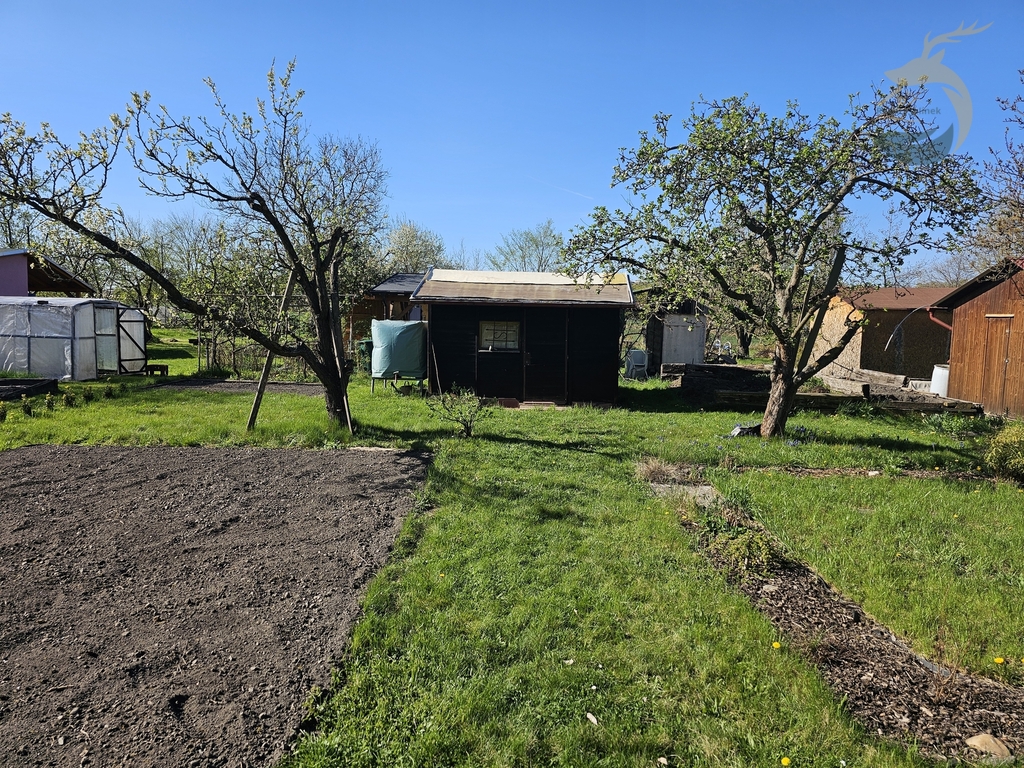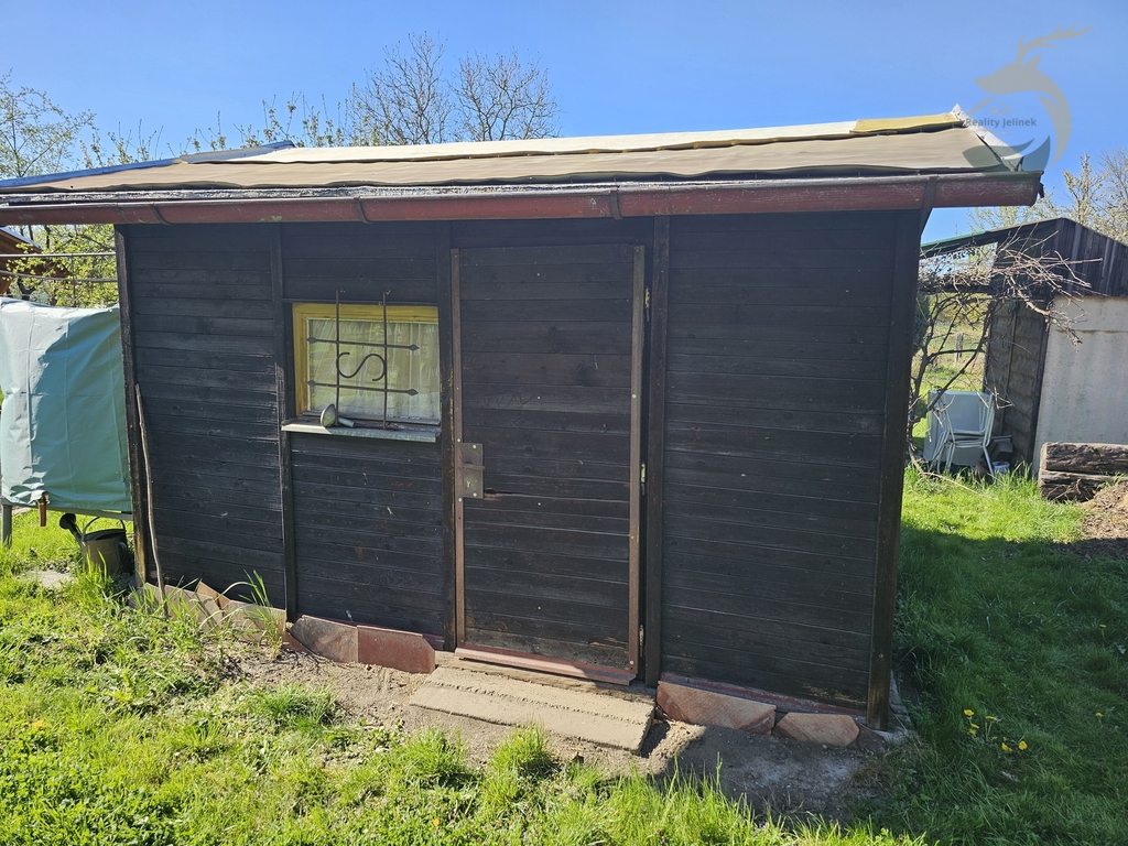 Na pozemku se nachází menší chatka o velikosti cca 12 m². K dispozici je elektřina (možnost obnovení odběrného místa) a sezónní pitná voda z městského řadu.