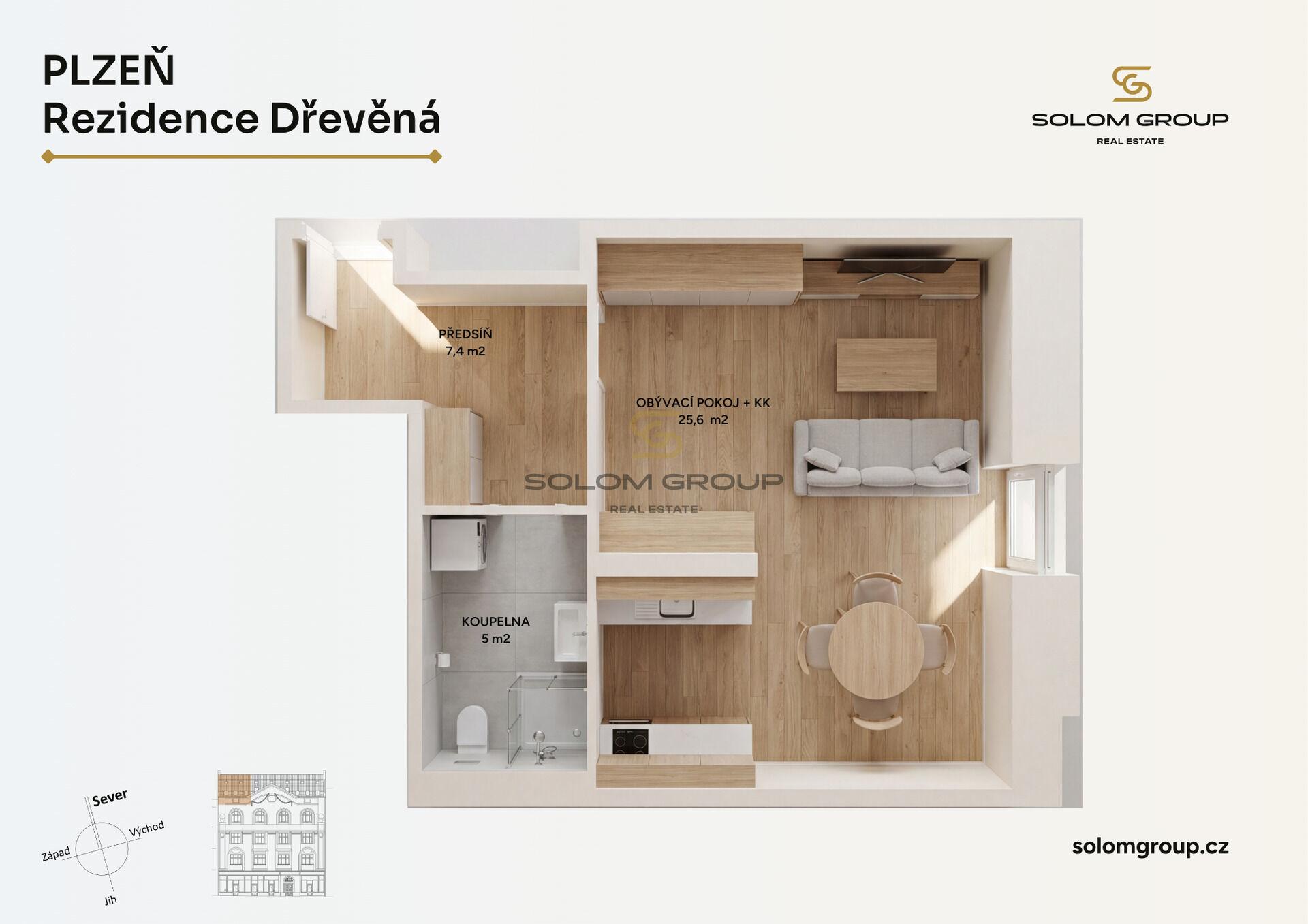 Nabízíme k prodeji kompletně zrekonstruovaný byt 1+kk o velikosti 39 m² v družstevním vlastnictví, nacházející se v Plzni, ulice Dřevěná.