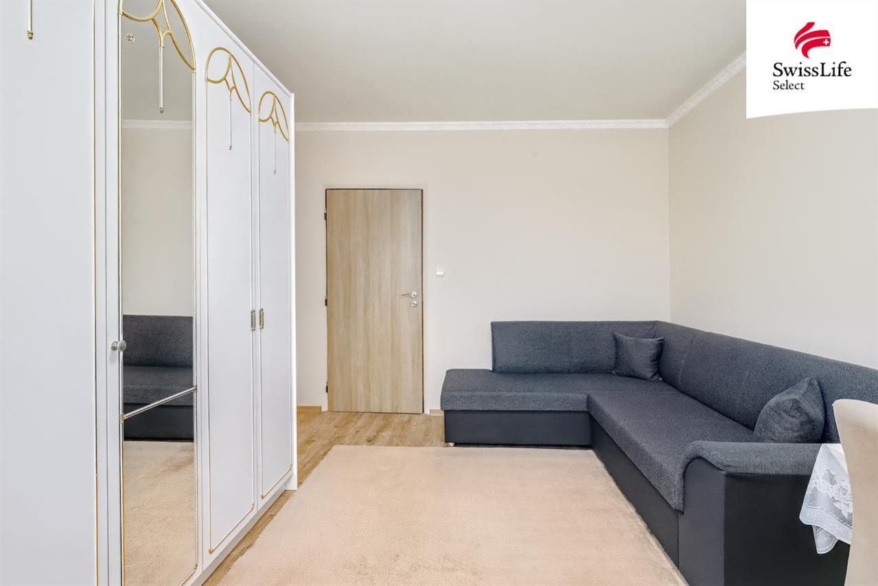 Dispozičně je byt rozdělen na prostornou předsíň s úložným prostorem, dva neprůchozí pokoje, kuchyni s místem na jídelní stůl, koupelnu ( s vanou, připojením na pračku, umyvadlem ) a samostatnou toaletu. Kuchyňská linka je vybavena plynovou varnou deskou, elektrickou troubou, digestoří a dřezem se stojánkovou baterií. Stěny ložnice jsou odhlučněné. Z okna obývacího pokoje je hezký výhled. Celkově byt působí útulným dojmem. Součástí nabídky je sklepní koje v suterénu domu.