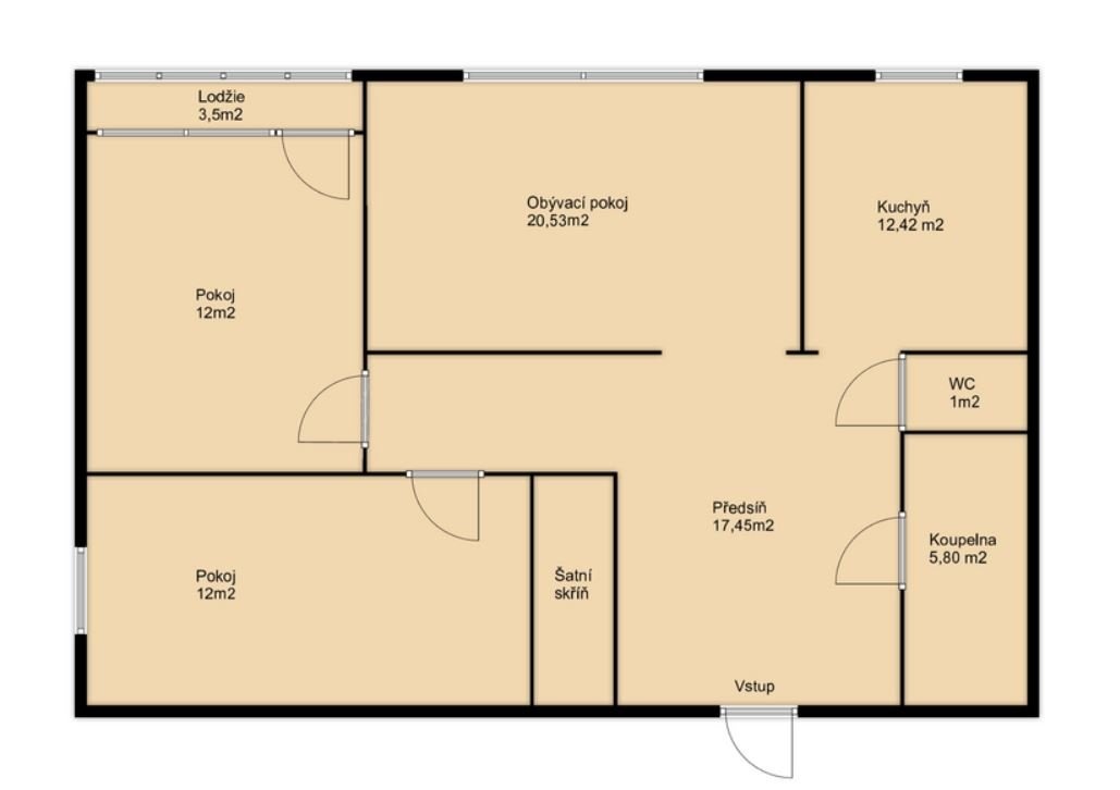 3 pokoji, kuchyní, samostatným wc a koupelnou. K bytu náleží lodžie a sklepní jednotka. Byt se nabízí částečně zařízený luxusní kuchyňskou linkou vybavenou spotřebiči Miele. V koupelně je sprchový kout i vana, na podlaze vinyl v šedé barvě a nadstandardní kvalitě.