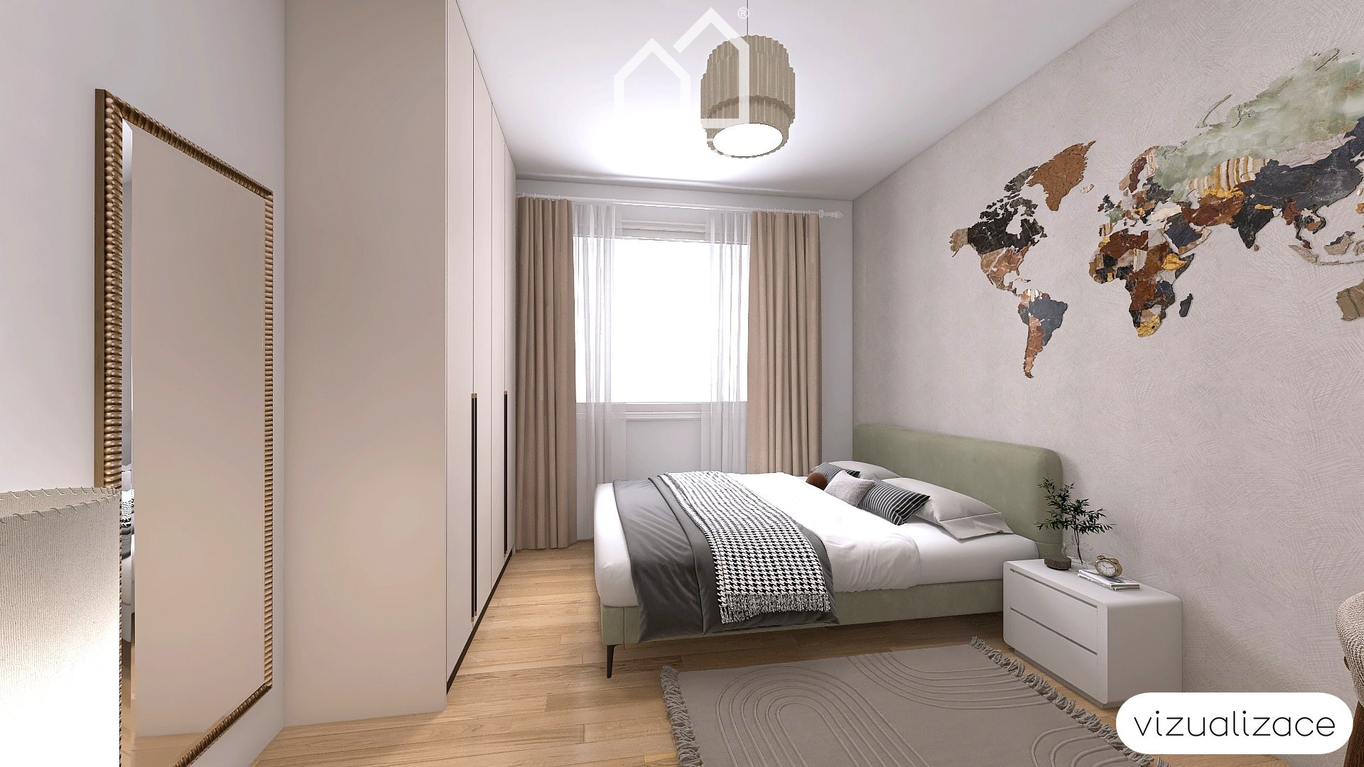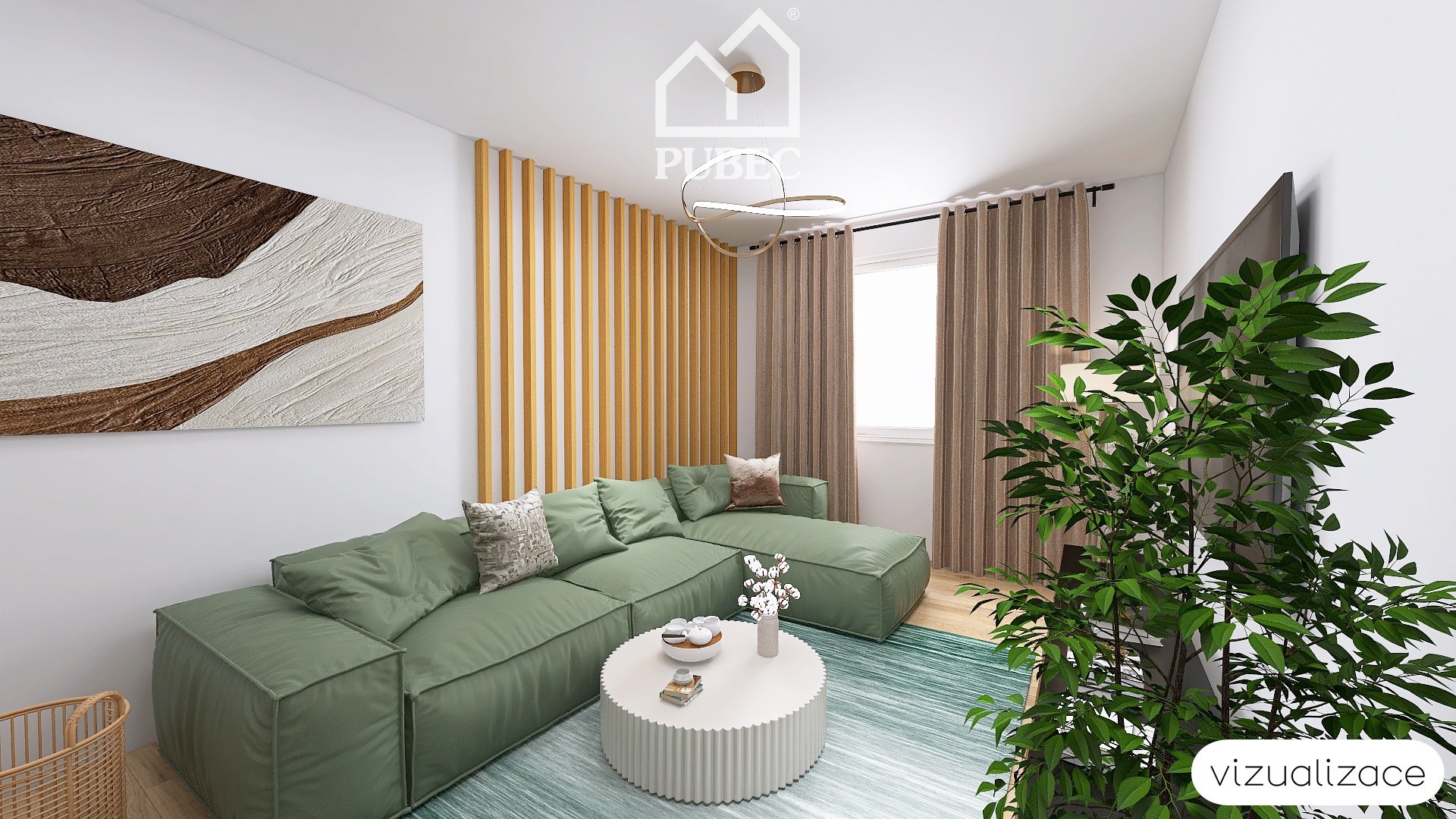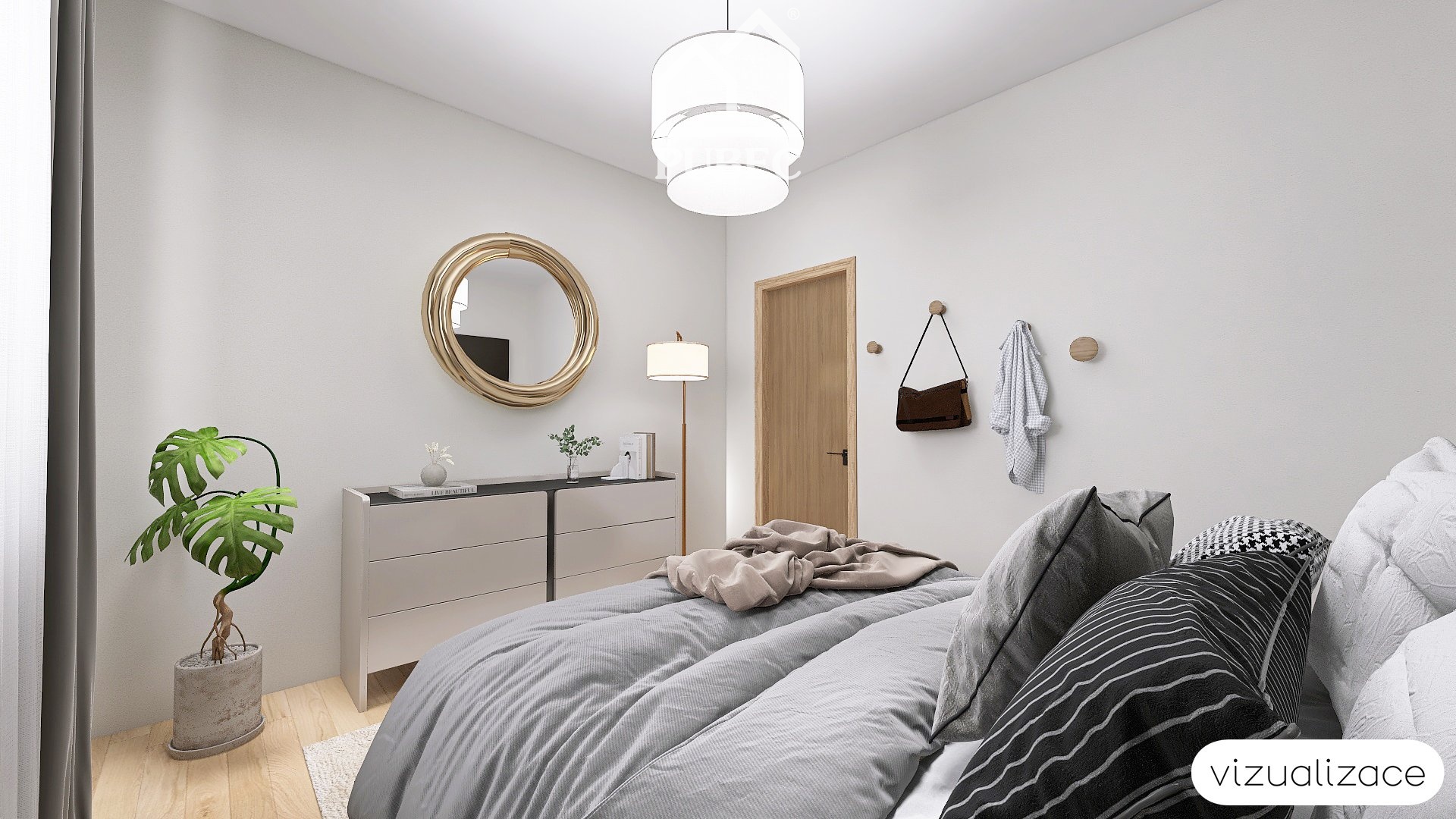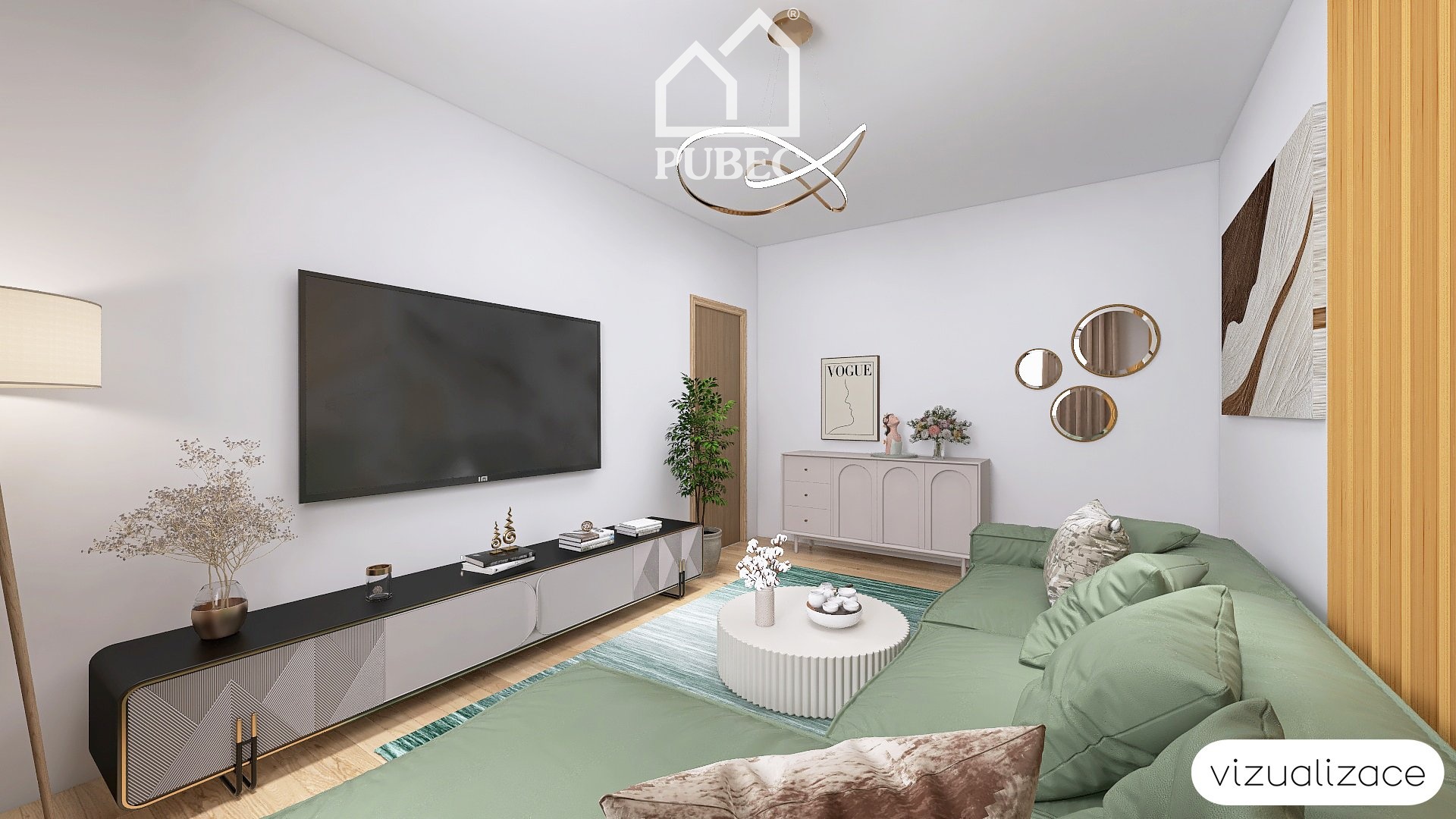 Vizualizace: Přiložené fotografie interiéru jsou vizualizace, které slouží jako inspirace a nápad, jak lze byt v budoucnu moderně a vkusně upravit.