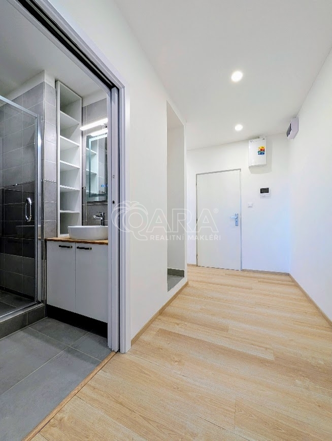 Bonusový prostor: K bytu náleží uzamykatelná vstupní chodbička (společná s jedním sousedem), ideální pro botník, kočárek nebo sportovní vybavení.