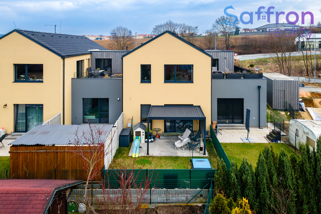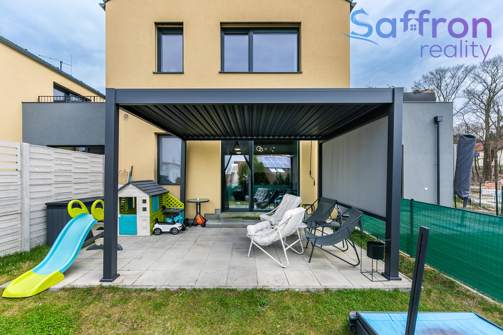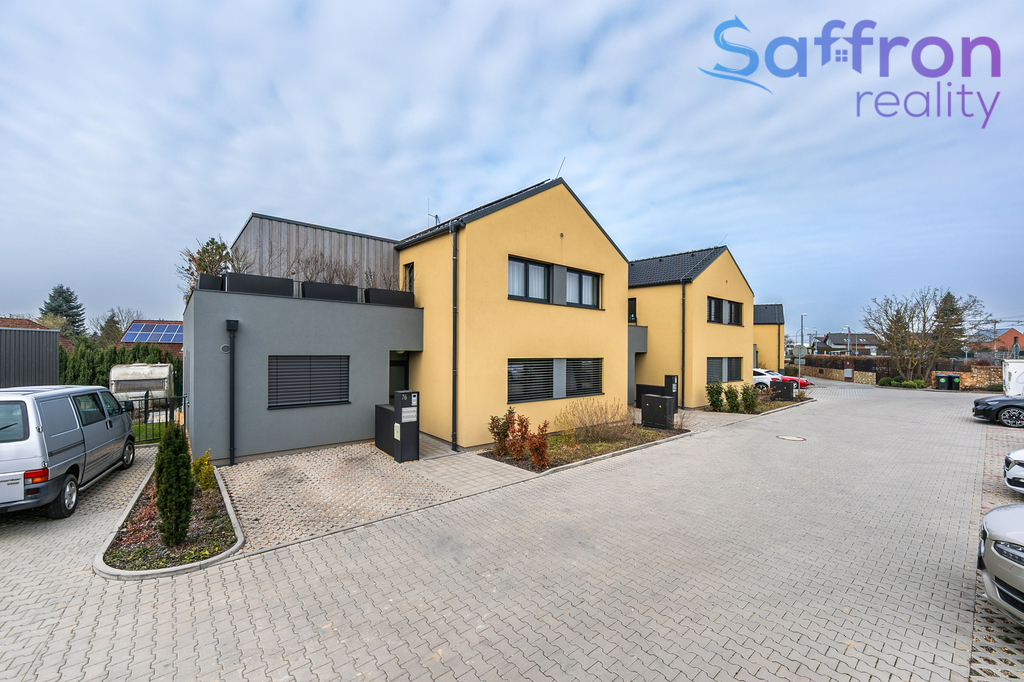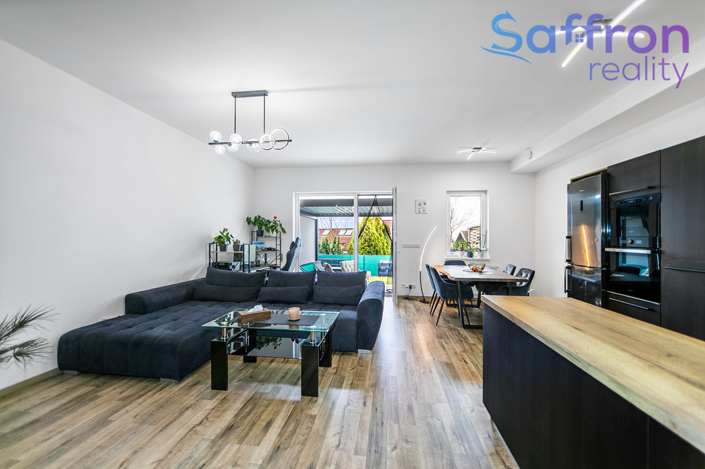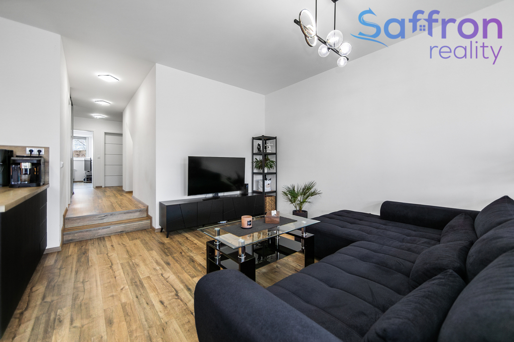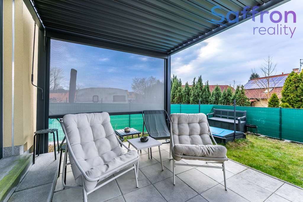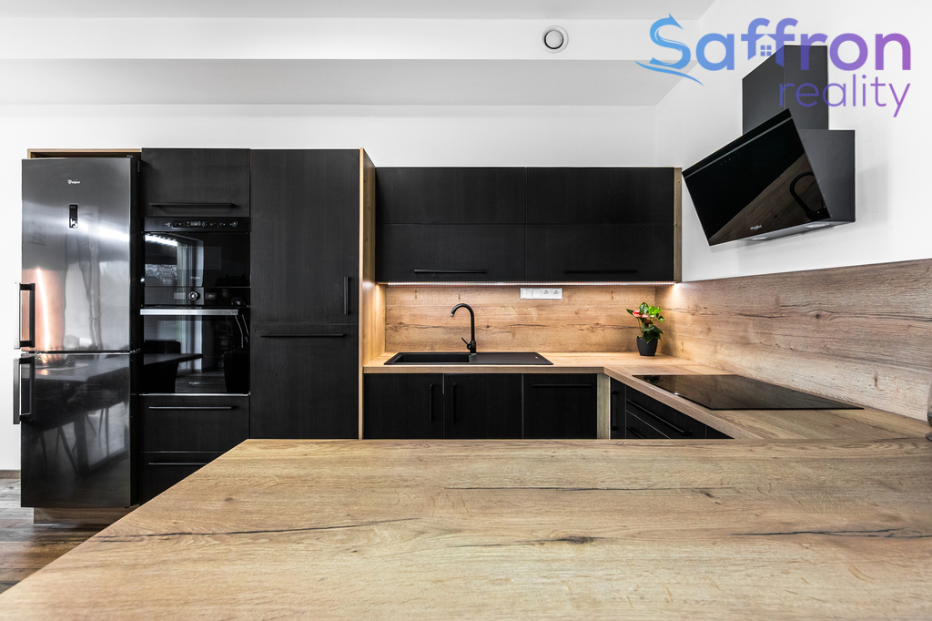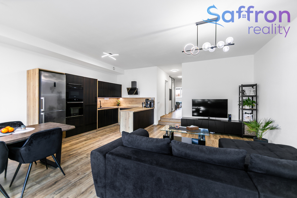Byt se nachází v novostavbě a nabízí komfortní, moderní bydlení s důrazem na kvalitu a praktičnost. Samozřejmostí je rekuperace, která zajišťuje stálý přísun čerstvého vzduchu a zdravé vnitřní prostředí. Dominantou je prostorný obývací pokoj s kuchyňským koutem v elegantním designu, kde se snoubí tmavé prvky s dekorem dřeva a vytváří nadčasový a útulný interiér. Velkoformátová francouzská okna zajišťují dostatek denního světla a umožňují přímý vstup na soukromou zahrádku, která je ideálním místem pro relaxaci, posezení s rodinou či přáteli, ale také například pro pěstování vlastní zeleniny ve vyvýšených záhonech.