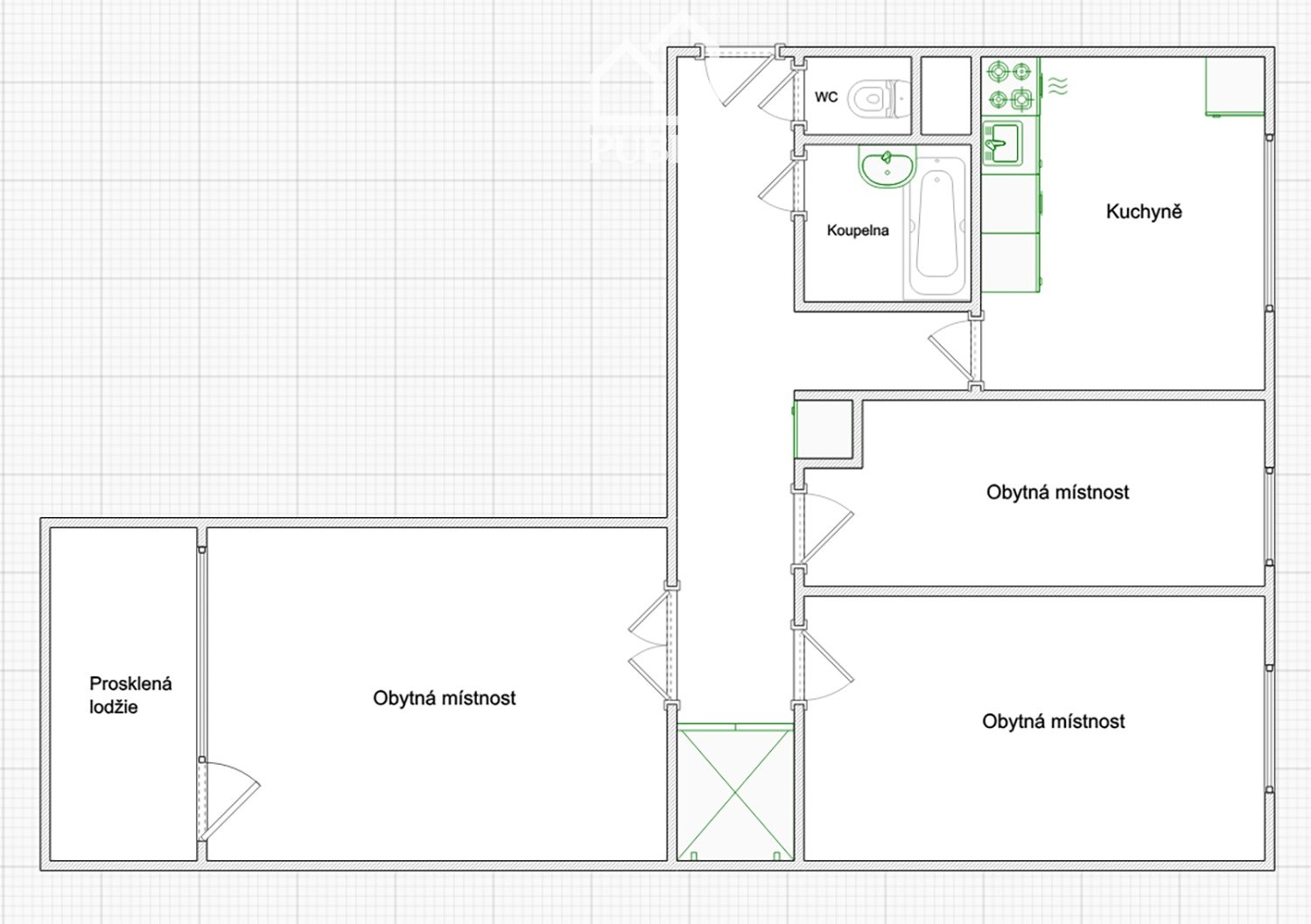 Předmětem nabídky je byt v původním stavu o dispozici 3+1 ve 3. patře panelového domu v Nýřanské ulici v Plzni - Bolevci. Byt nabízí dispozici členěnou na centrální předsíň umožňující přístup do jednotlivých místností, kterými jsou 2 pokoje, obývací pokoj, kuchyně vybavená kuchyňskou linkou, samostatné WC a koupelnu vybavenou vanou. K dispozici je i lodžie přístupná z obývacího pokoje. Bytové jádro je původní umakartové. Okna jsou plastová, podlaha je kryta dlažbou a PVC.