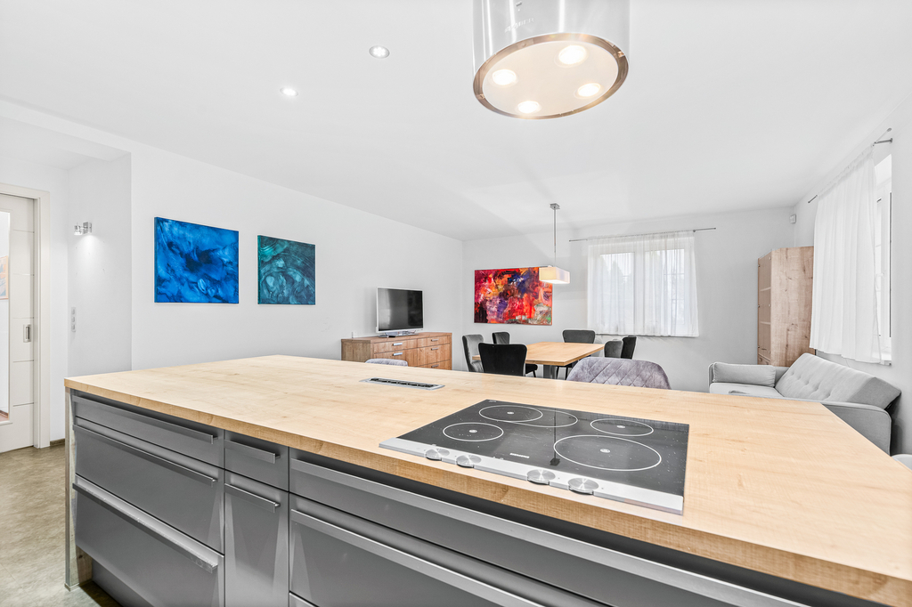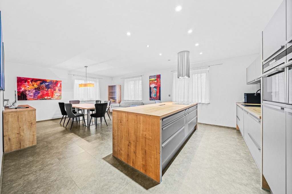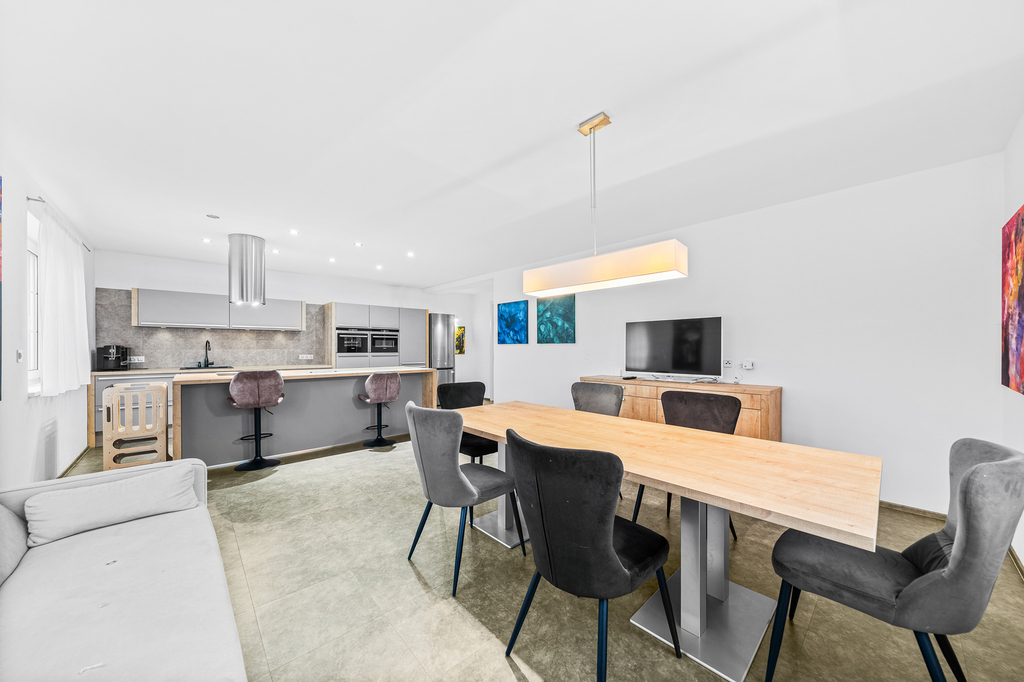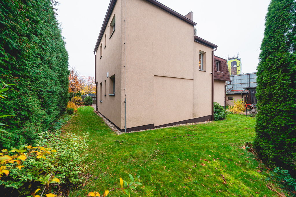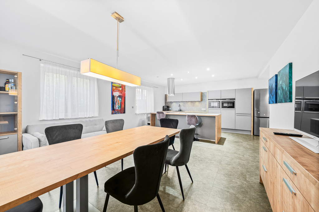 Patrový dům o zastavěné ploše 148 m2 a celkové užitné ploše cca 230 m2 prošel kompletní a velmi zdařilou a promyšlenou rekonstrukcí (kuchyně na míru vč. vestavných spotřebičů, nové koupelny, podlahové vytápění…).