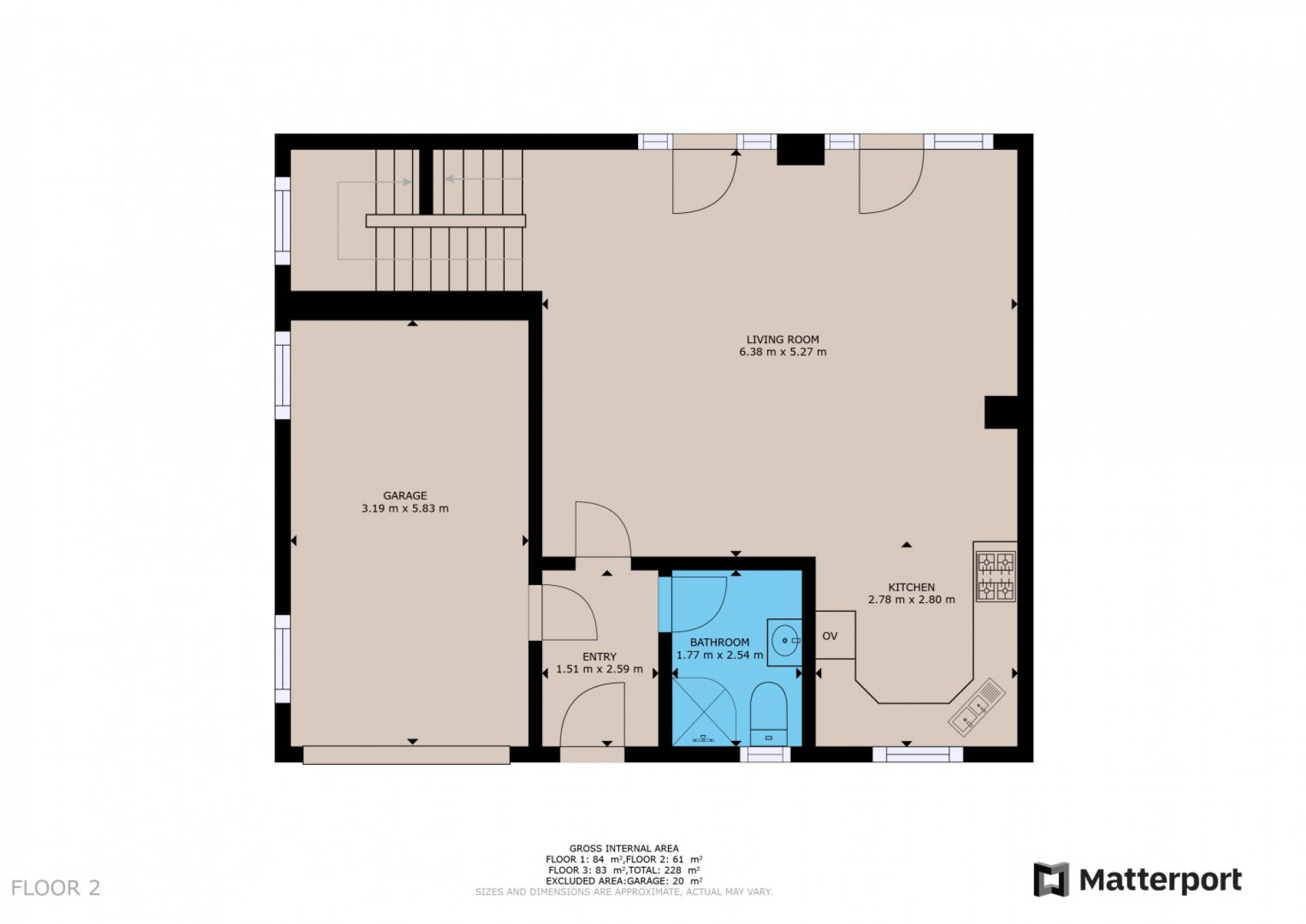 podlaží tvoří hlavní obytnou část domu. Najdete zde prostorný obývací pokoj o ploše přes 33 m², kuchyni, další koupelnu, vstupní halu a přímý vstup do garáže o velikosti 20 m². Z tohoto podlaží je přístup na balkon s příjemným výhledem do okolí.