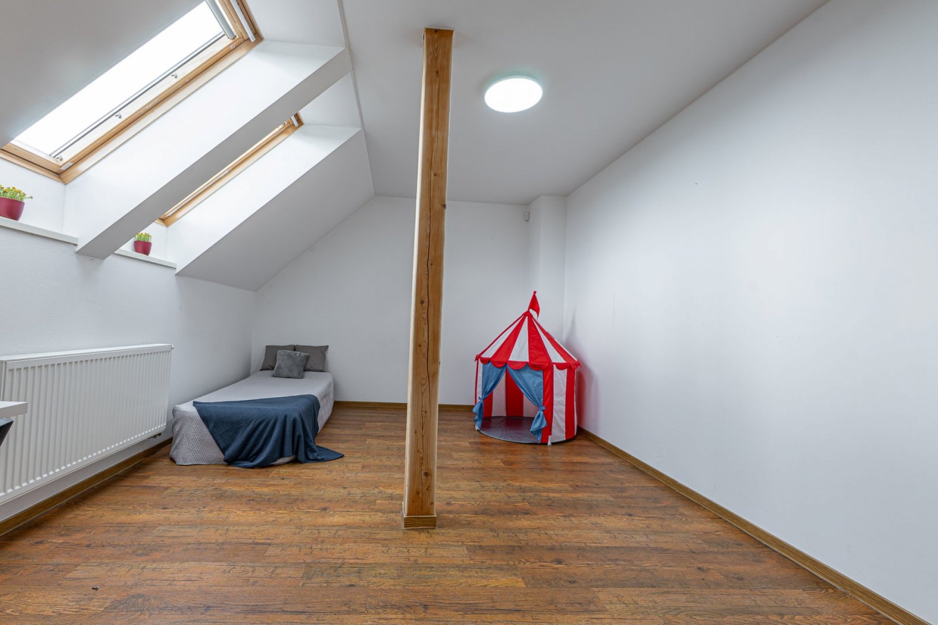 Ve 3. podlaží jsou umístěny tři samostatné a velmi prostorné pokoje, včetně hlavní ložnice o velikosti přes 21 m². Nechybí ani třetí, největší koupelna vybavená rohovou vanou, umyvadlem, WC a bidetem. Tato část domu působí klidně, vzdušně a nabízí příjemné výhledy do okolní zeleně. Praktickým bonusem je také půda, kterou noví majitelé využijí jako velkorysý úložný prostor pro sezónní věci, sportovní vybavení i další zázemí domácnosti.