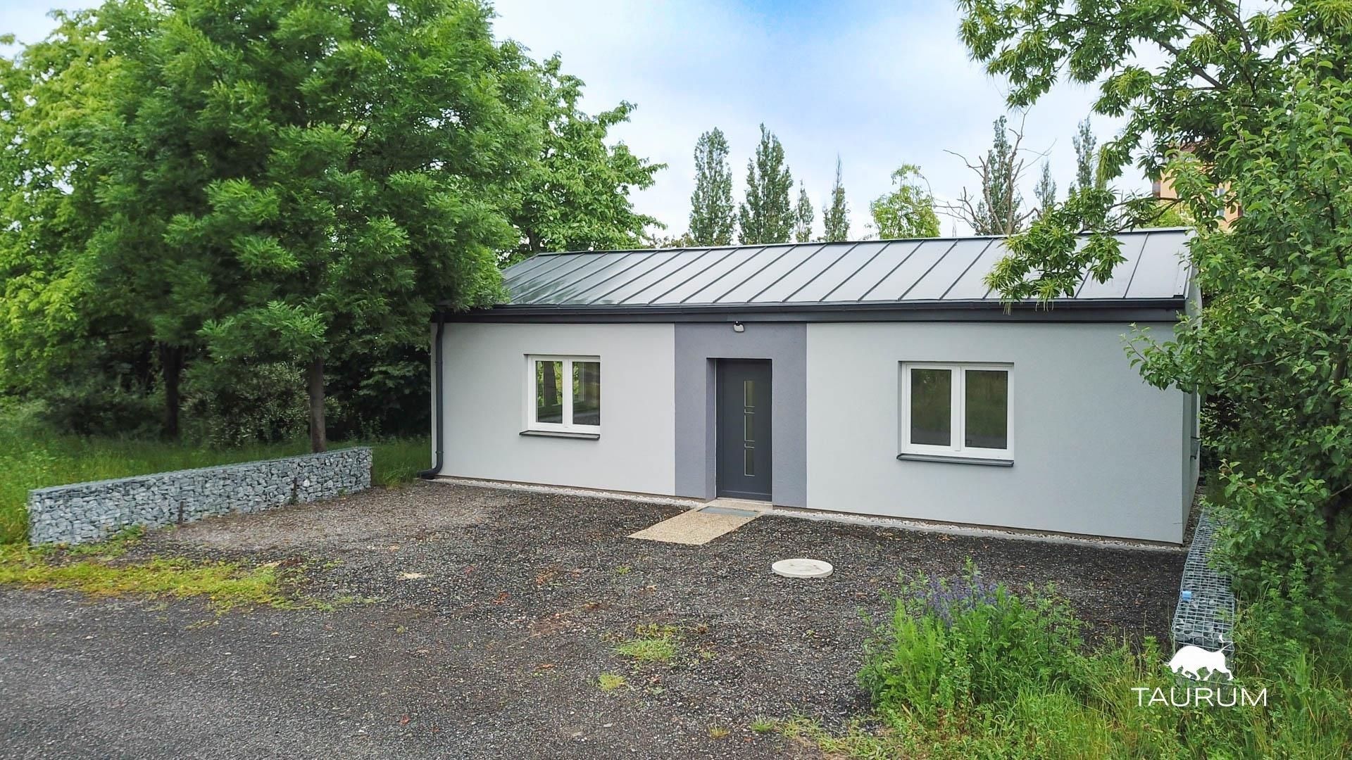 Dům je zděný, z Ytongu o šíři 25cm a zateplen je 14cm šedým polystyrenem, na betonové základové desce. Je napojen na obecní vodovod, elektřina je 230V (k dispozici jsou 3 fáze, jen na 400V není vyhotovená zásuvka). Kanalizace je řešena jímkou o objemu 6 m3, která je přímo před domem. Okna jsou plastová, podlahy vinyl (v místnostech) a dlažba (předsíň a koupelna s wc). Střecha je plechová s 30 cm foukanou izolací. Ohřev teplé vody zajišťuje bojler, vytápění je řešeno přímotopy v místnostech.
