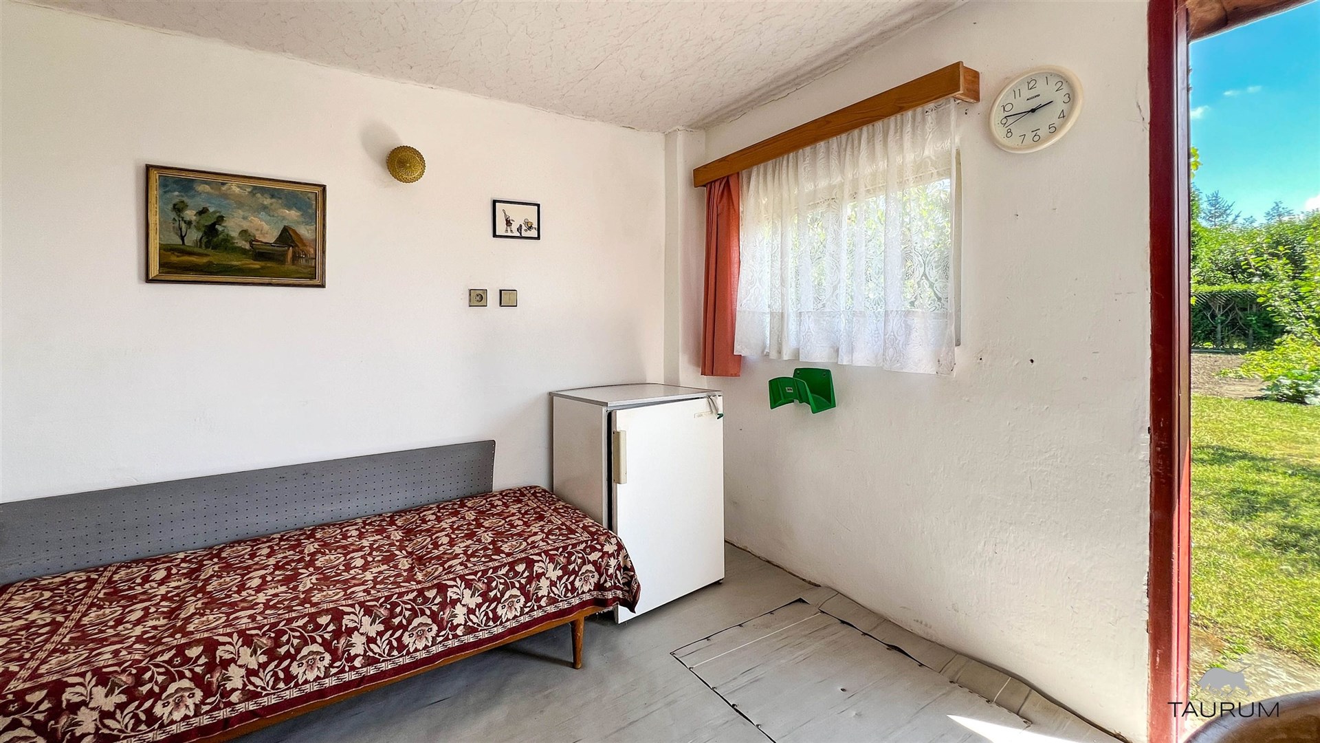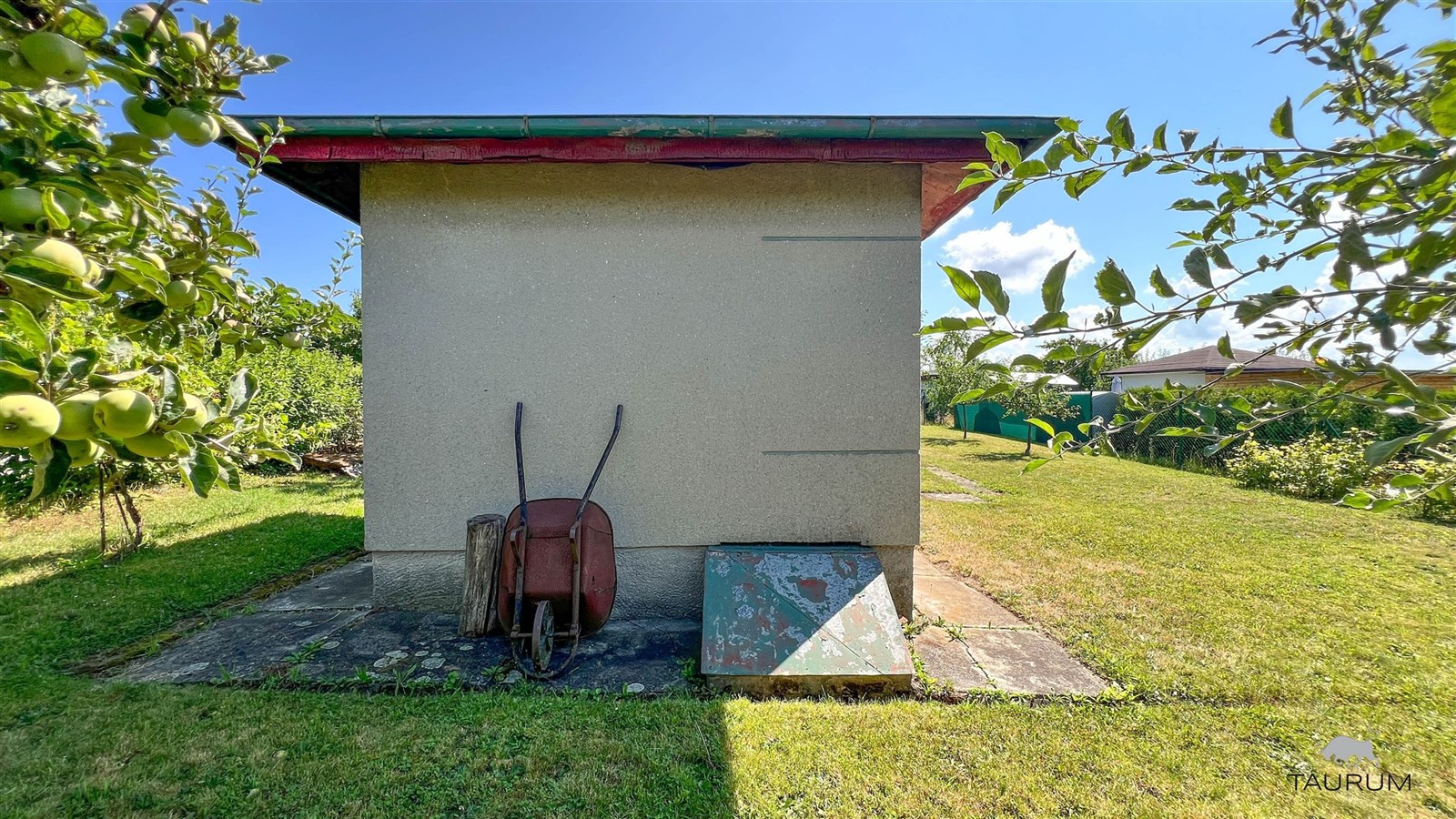Součástí pozemku je zděná, podsklepená chata o zastavěné ploše 12 m². Chata je přízemní a je do ní zavedena elektřina. Na pozemek je zároveň přivedena voda z obecního vodovodu.