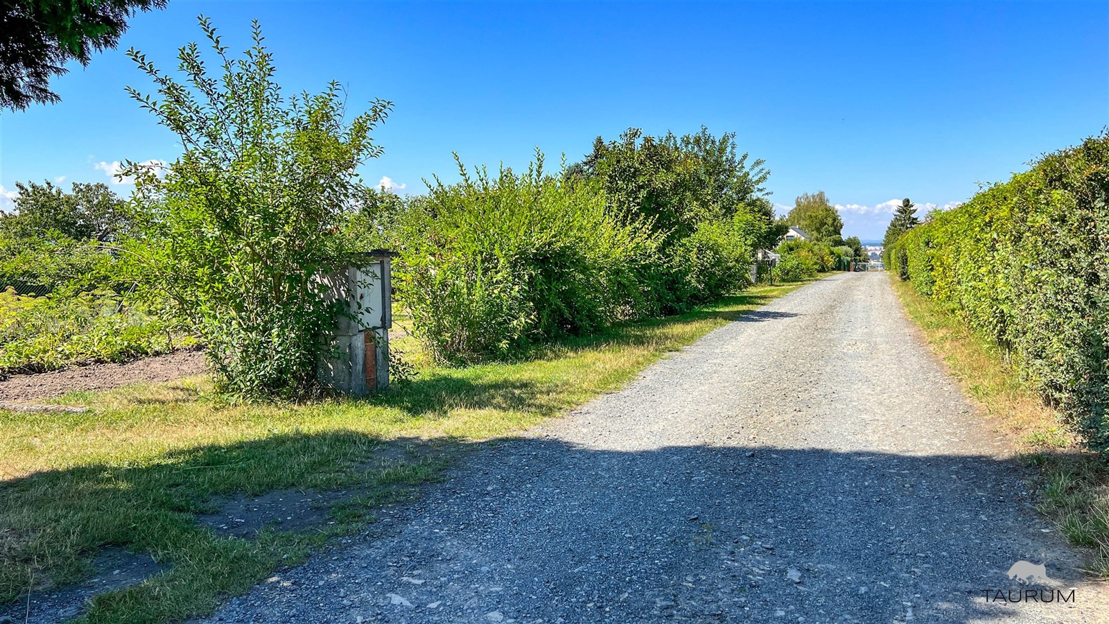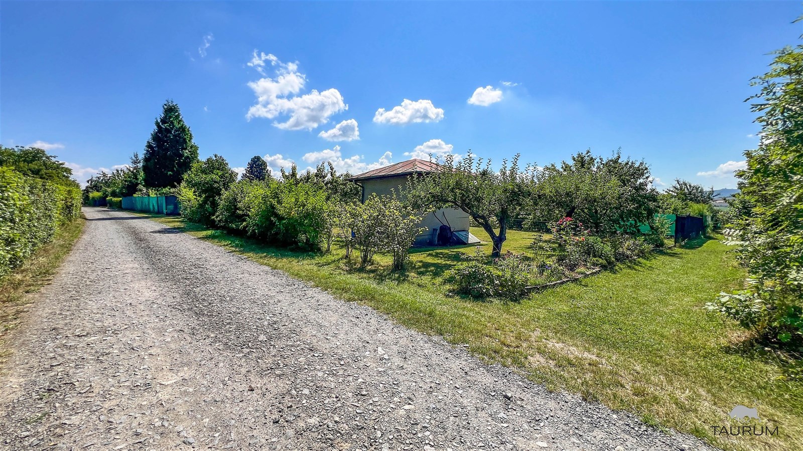 Pozemek se nachází uprostřed zahrádkářské kolonie a má přímý přístup na komunikaci v areálu, což umožňuje bezproblémové parkování přímo u pozemku. Pozemek je rovinatý, obdélníkového tvaru, velmi dobře udržovaný a osázený ovocnými stromy.