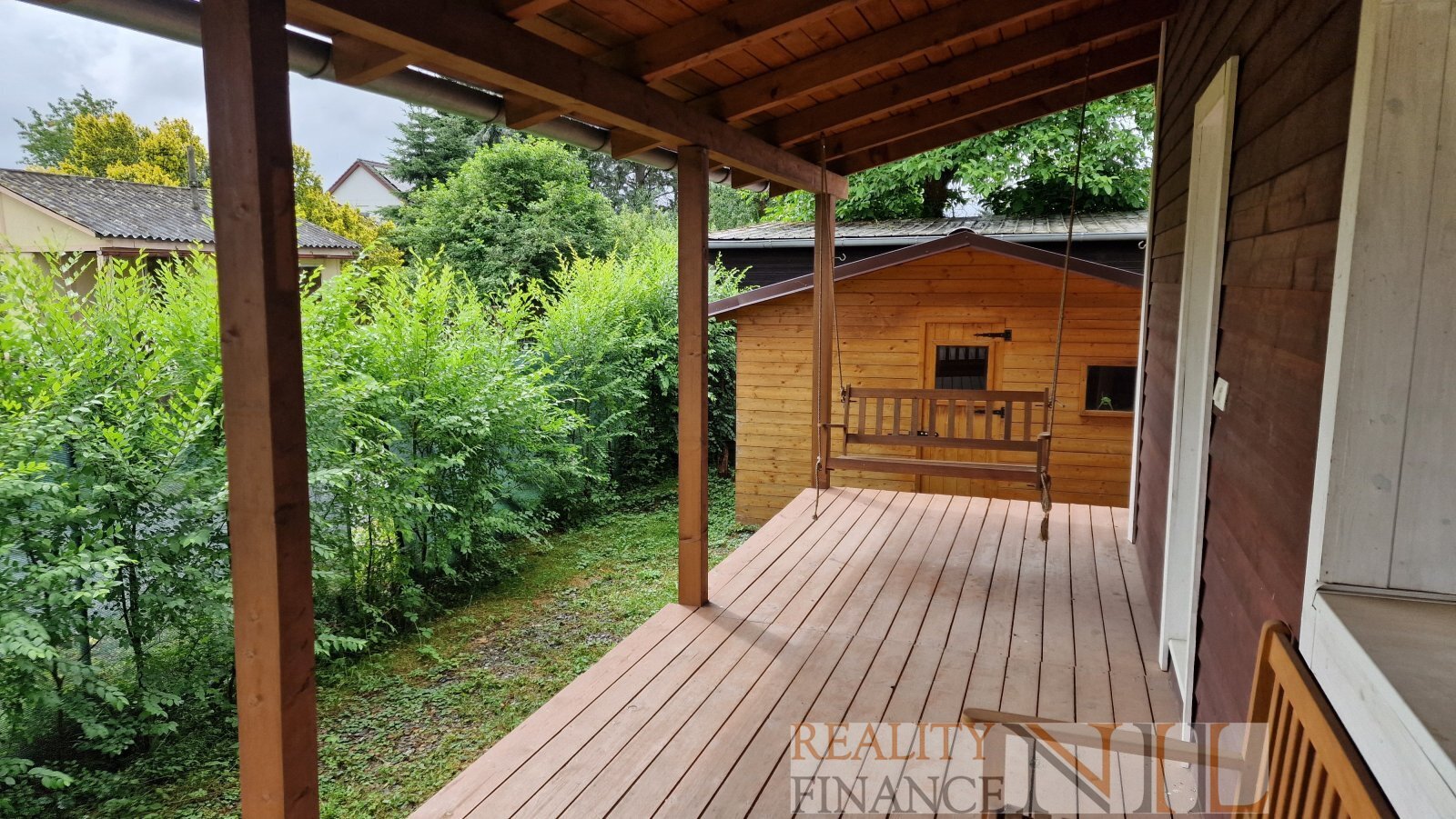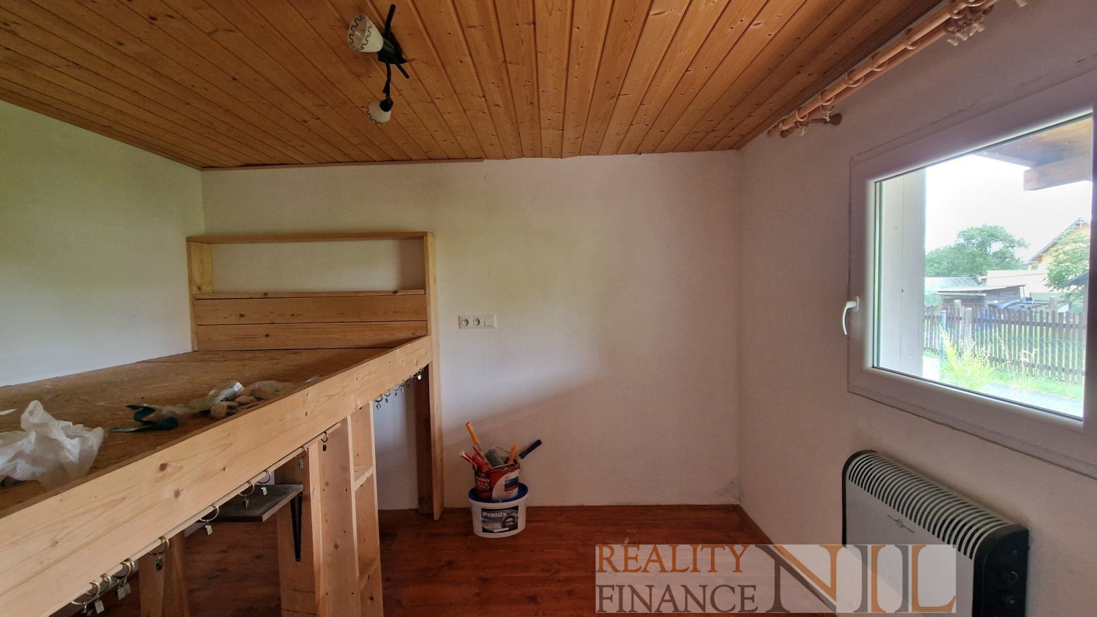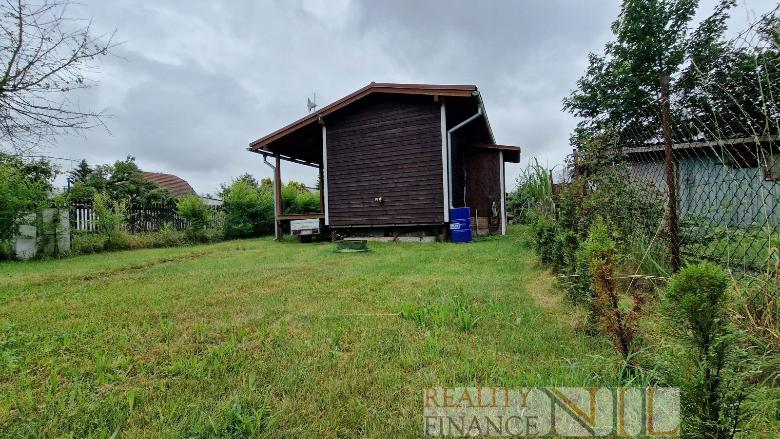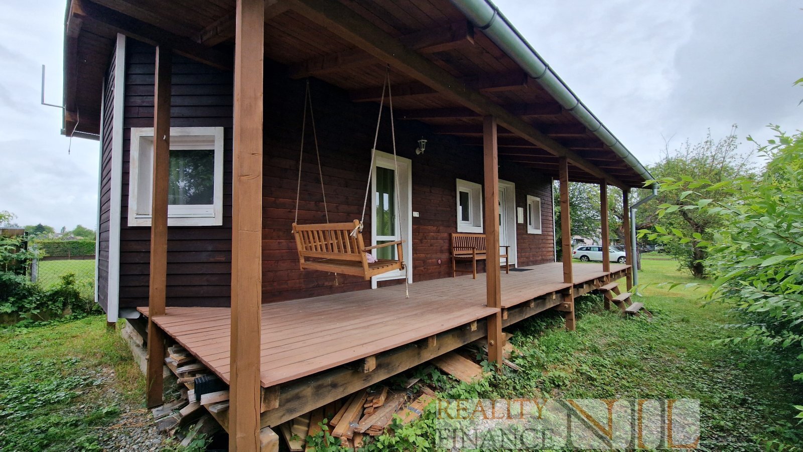 Na pozemku stojí Mobilheim o velikosti 40 m2 s dispozicí 2+kk a velikostí 3,5 x 11 m.