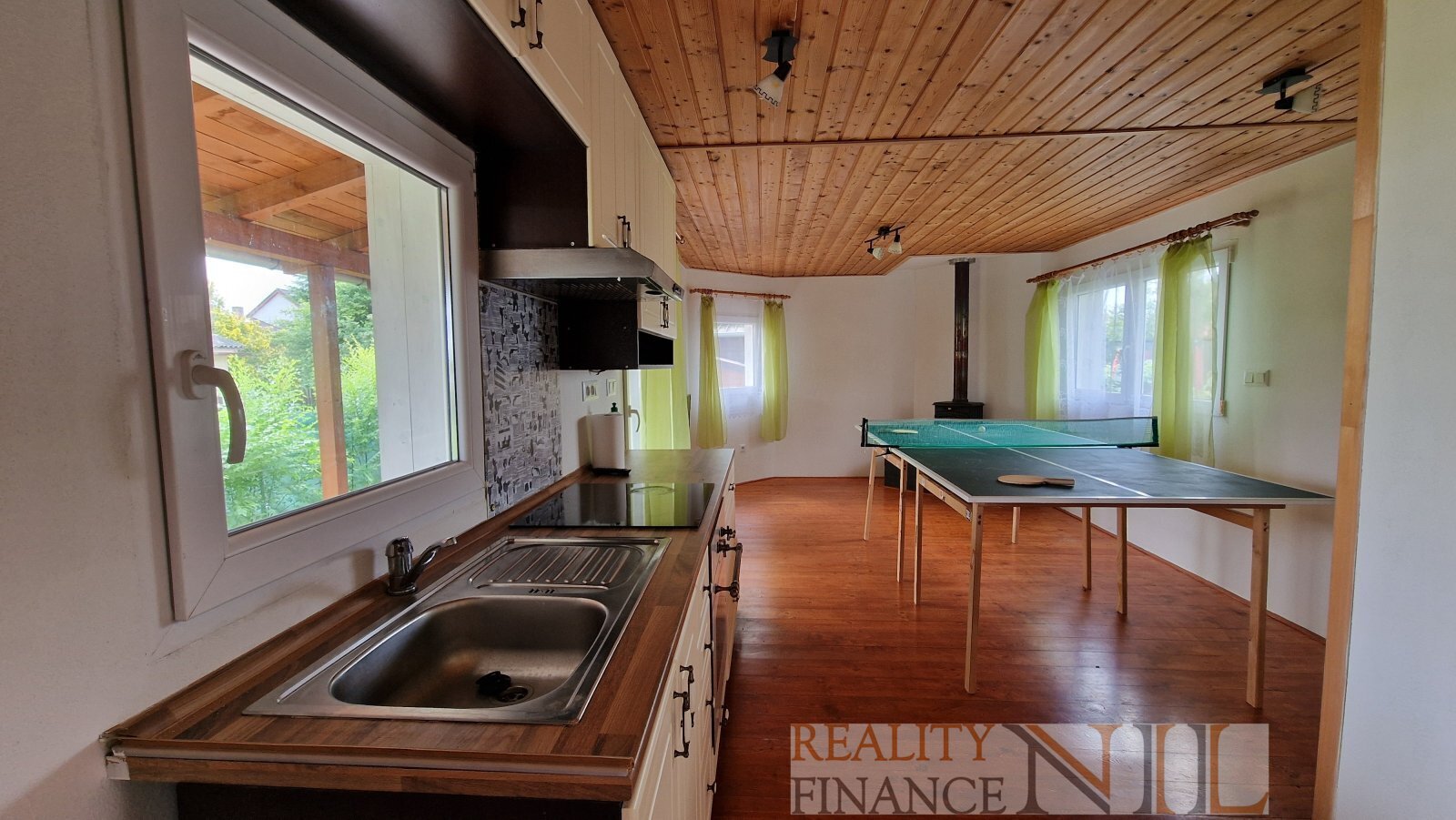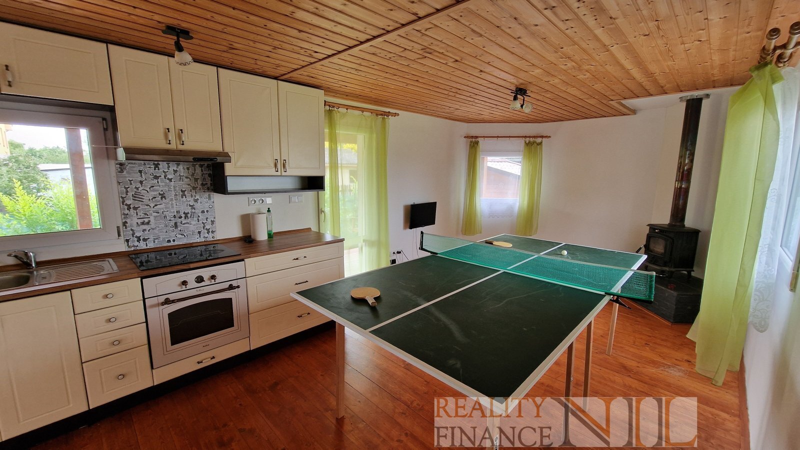 Vytápění zajištěno elektrickým přímotopem + kamny na tuhá paliva. Ohřev vody zajištěn elektrickým bojlerem.